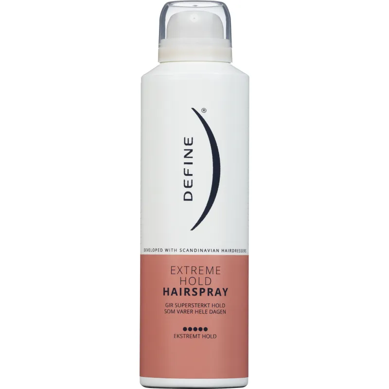 Лак для волос Define Extreme Hold обеспечивает чрезвычайно сильную фиксацию волос на срок до 24 часов. Легко вычесывается из волос. Веганская формула. Объем упаковки 200 мл.
