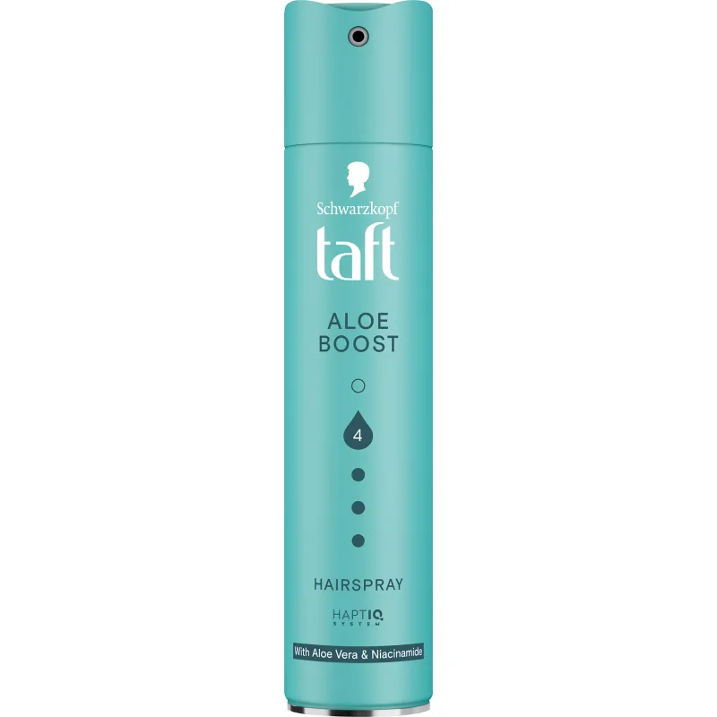 Инновационный спрей Taft Aloe Boost увлажняет и укрепляет волосы, обеспечивая длительную фиксацию. Содержащийся в формуле алоэ вера увлажняет волосы, а ниацинамид помогает укрепить и защитить укладку от влаги. Лак для волос использует технологию HAPTIQ System, создающую микросвязи и укрепляющую структуру волос. Результат – гладкая и красивая прическа без липкости.