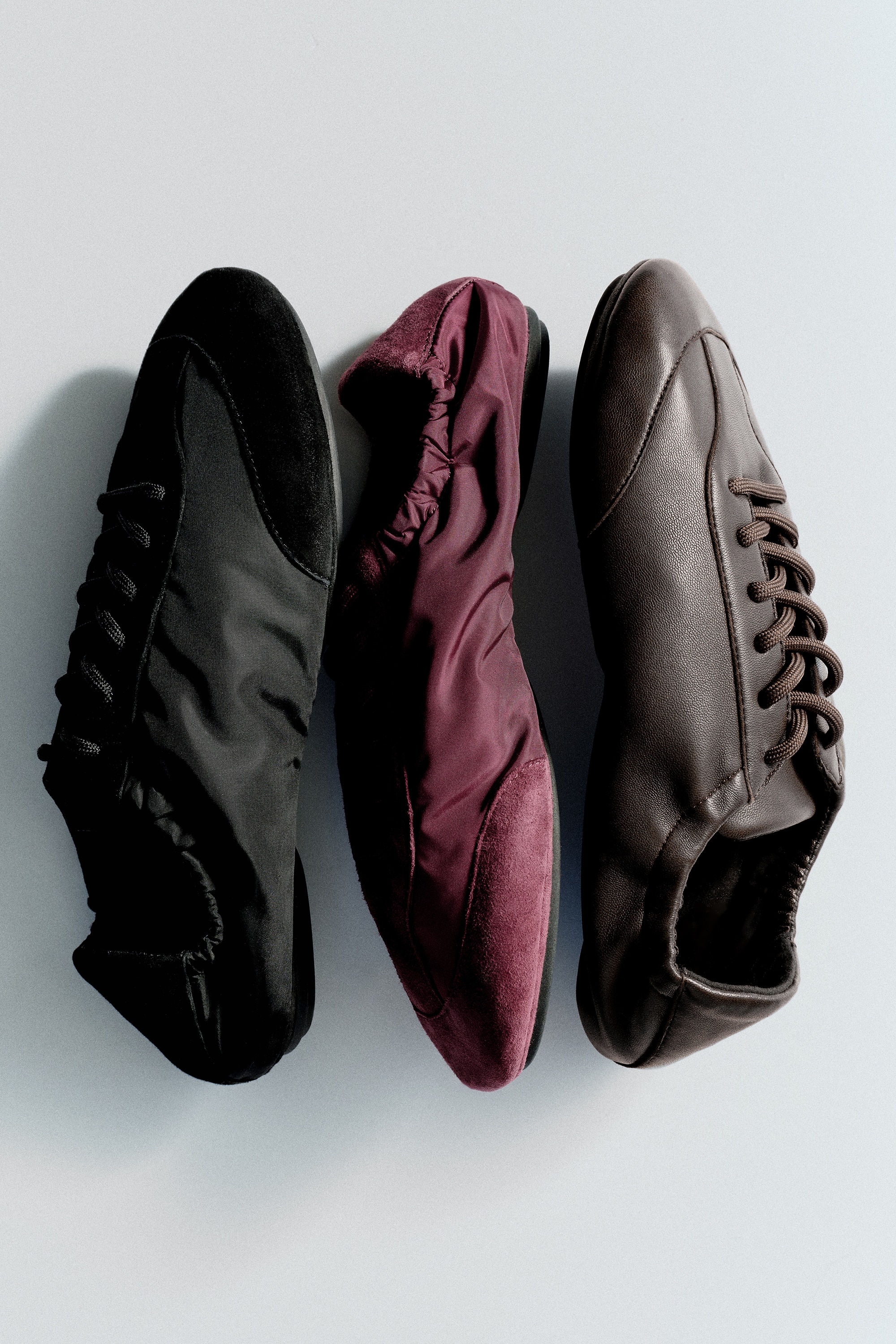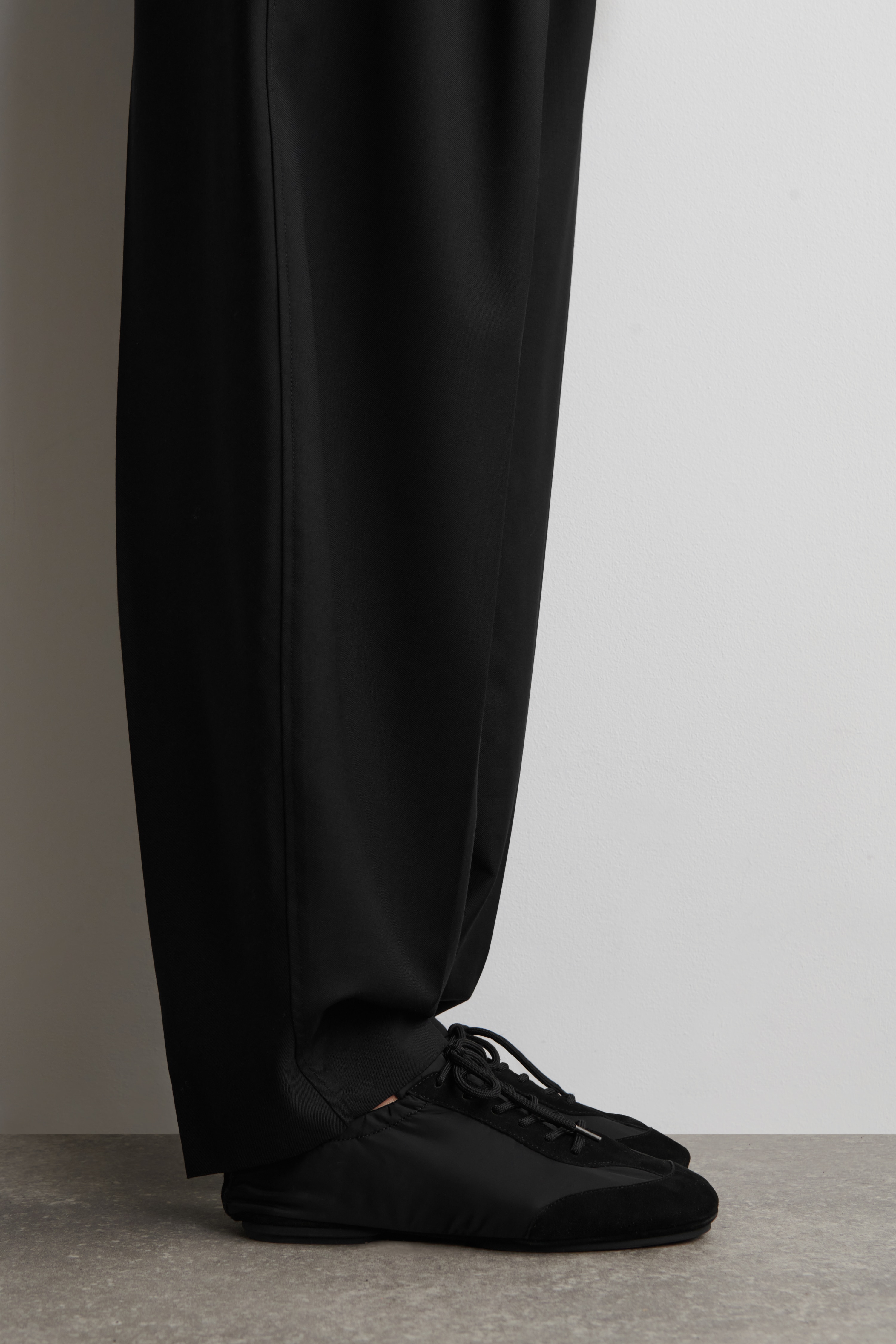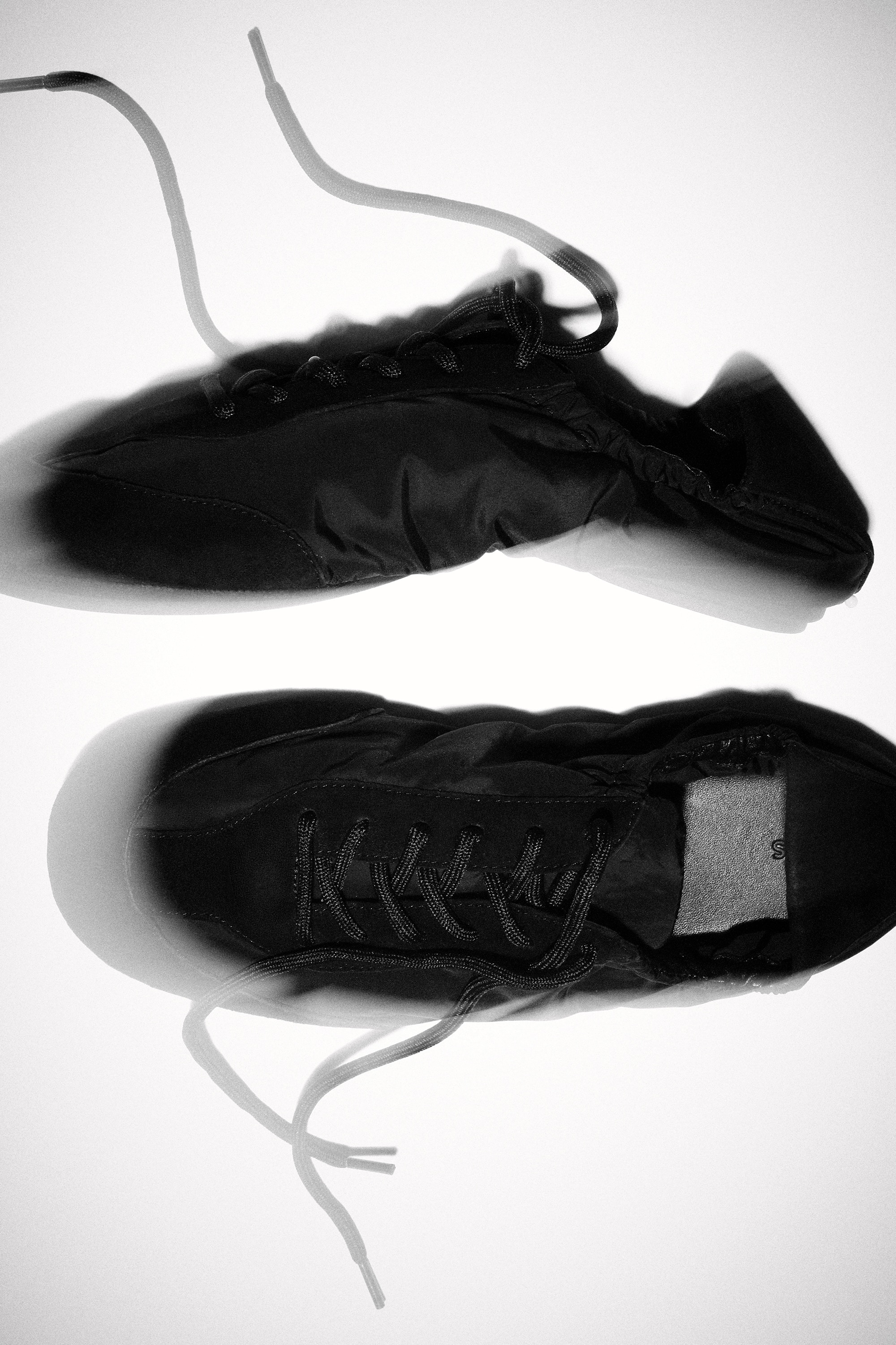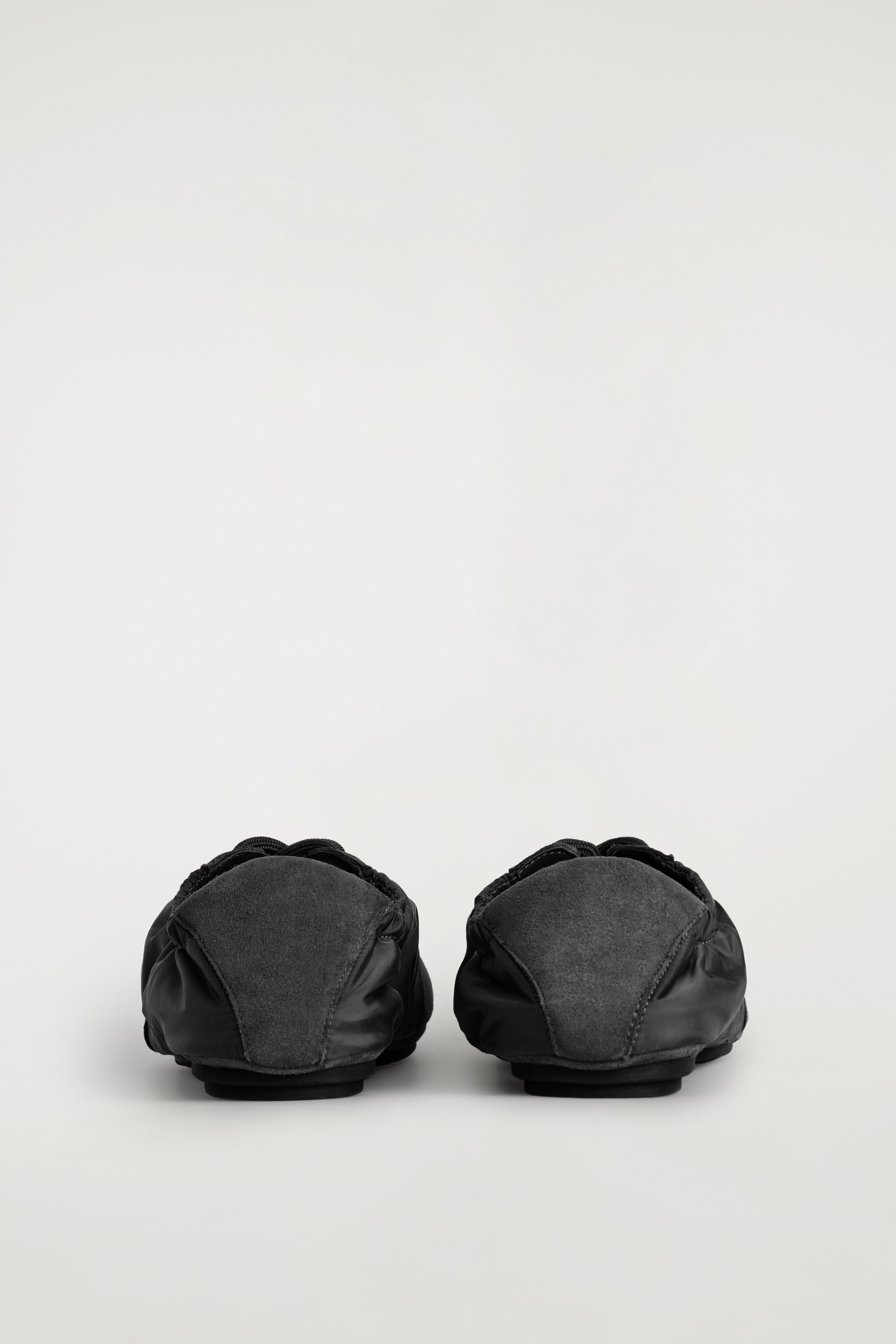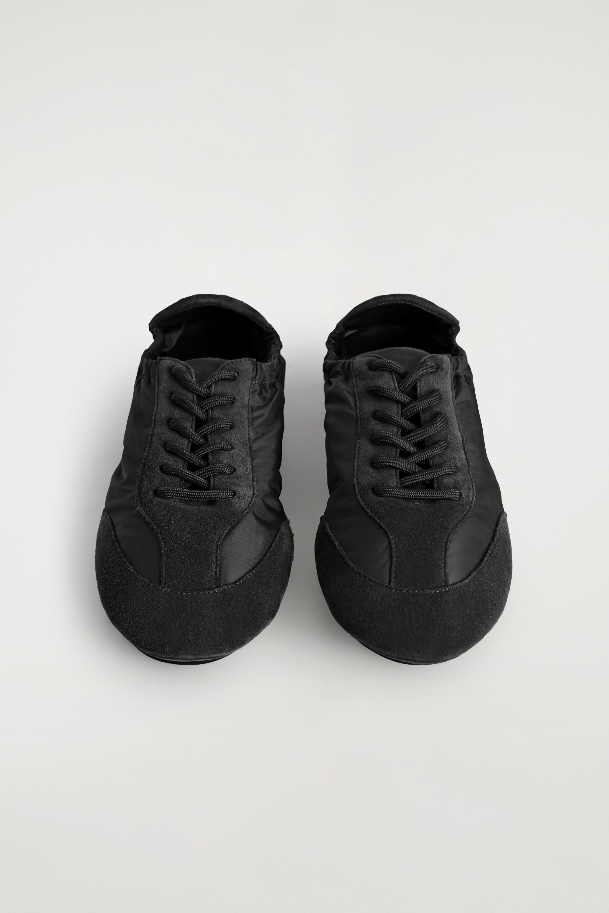Представляем балетный тренер: икону гардероба, новую интерпретацию в линии дизайна COS. Эта пара из прочного черного нейлона имеет верх из премиальной замши и разделенную подошву, что делает их очень гибкими. Ленточное крепление Мы используем автоматический перевод в случае вопросов обращайтесь к менеджеру