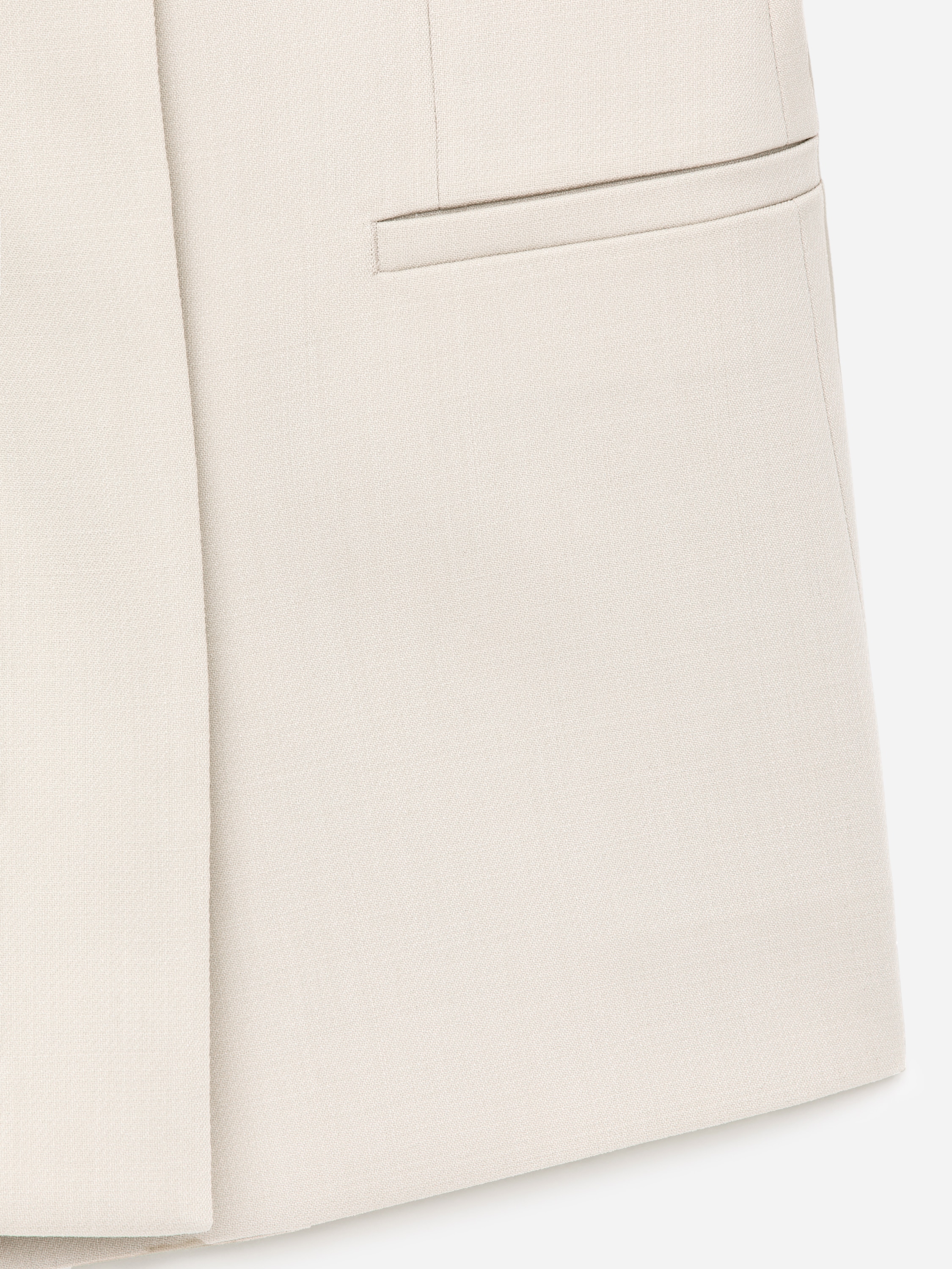 Состав: Полиэстер 51%, Шерсть 45%, Эластан 4%, Подкладка: Ацетат 100% Материал: Шерсть Длина изделия: Нормальная длина Длина рукова: Длинные рукава Детали материала: Эластан: Эластан — гибкое синтетическое волокно, получаемое из нефти (невозобновляемого природного ресурса). Детальный материал: Полиэстер: Полиэстер — это синтетическое волокно, полученное из сырой нефти (невозобновляемого природного ресурса). Детальный материал: Ацетат: Ацетат — это целлюлозный материал, который обычно изготавливается из древесины, но сырье может также состоять из других целлюлозных материалов. Это может быть твердое вещество или текстильное волокно. Детали материала: Шерсть: Шерсть – это натуральное волокно, полученное от овец. Детальный материал: Ацетат Eastman Naia™: Ацетатное целлюлозное волокно Eastman Naia™ производится из древесной массы и уксусной кислоты, полученной из ископаемого сырья. Производственный процесс в закрытой системе, где Кемика используется повторно.