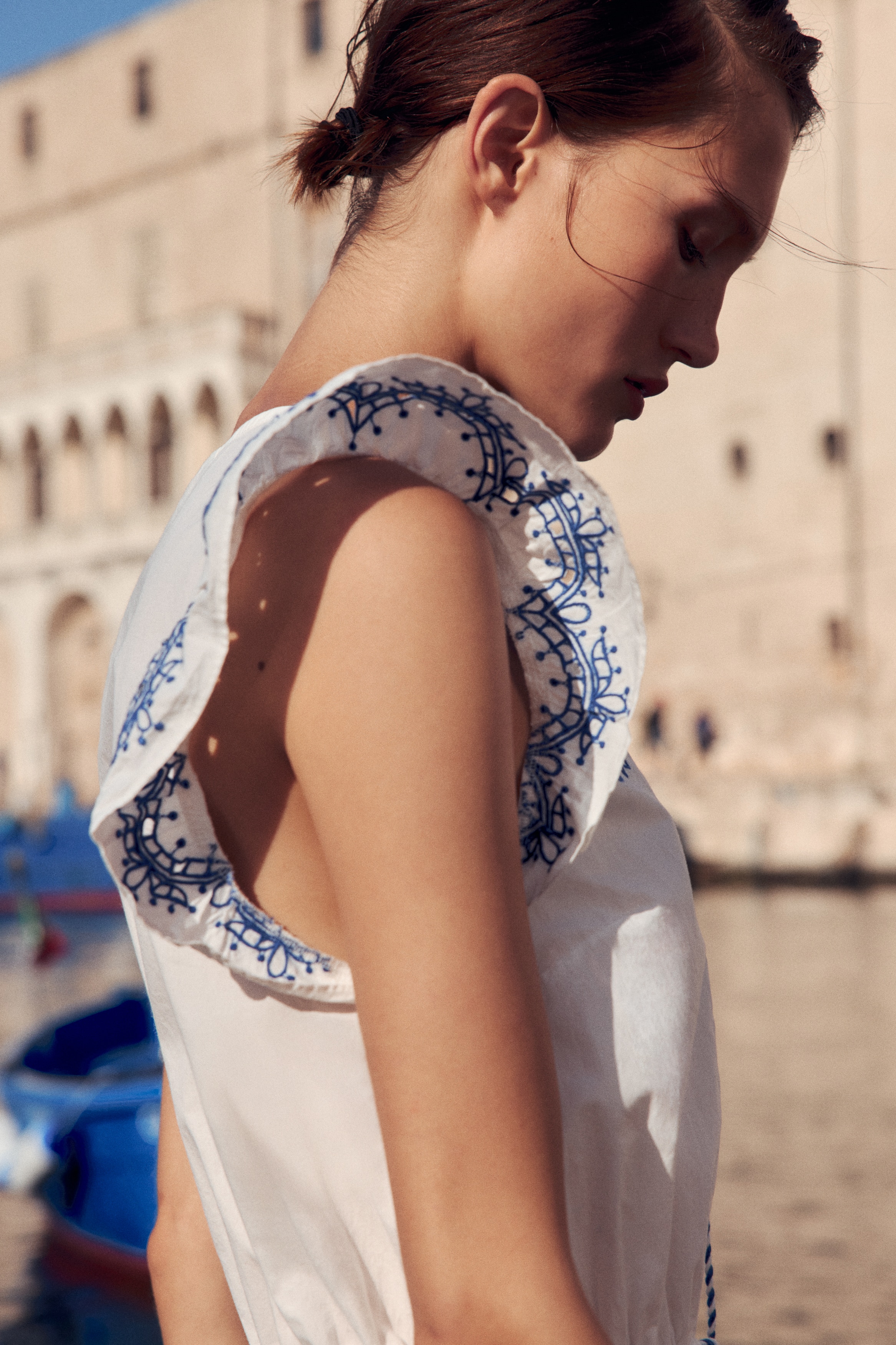 Состав: Хлопок 100% Материал: Хлопок Длина изделия: Короткая Длина ракова: Короткие рукава Детальный материал: Хлопок: Хлопок – мягкое и универсальное натуральное волокно, полученное из хлопкового растения. Размеры: XXS, XS, S, M, L, XL, XXL | Цвета: Белый/Синий узор
