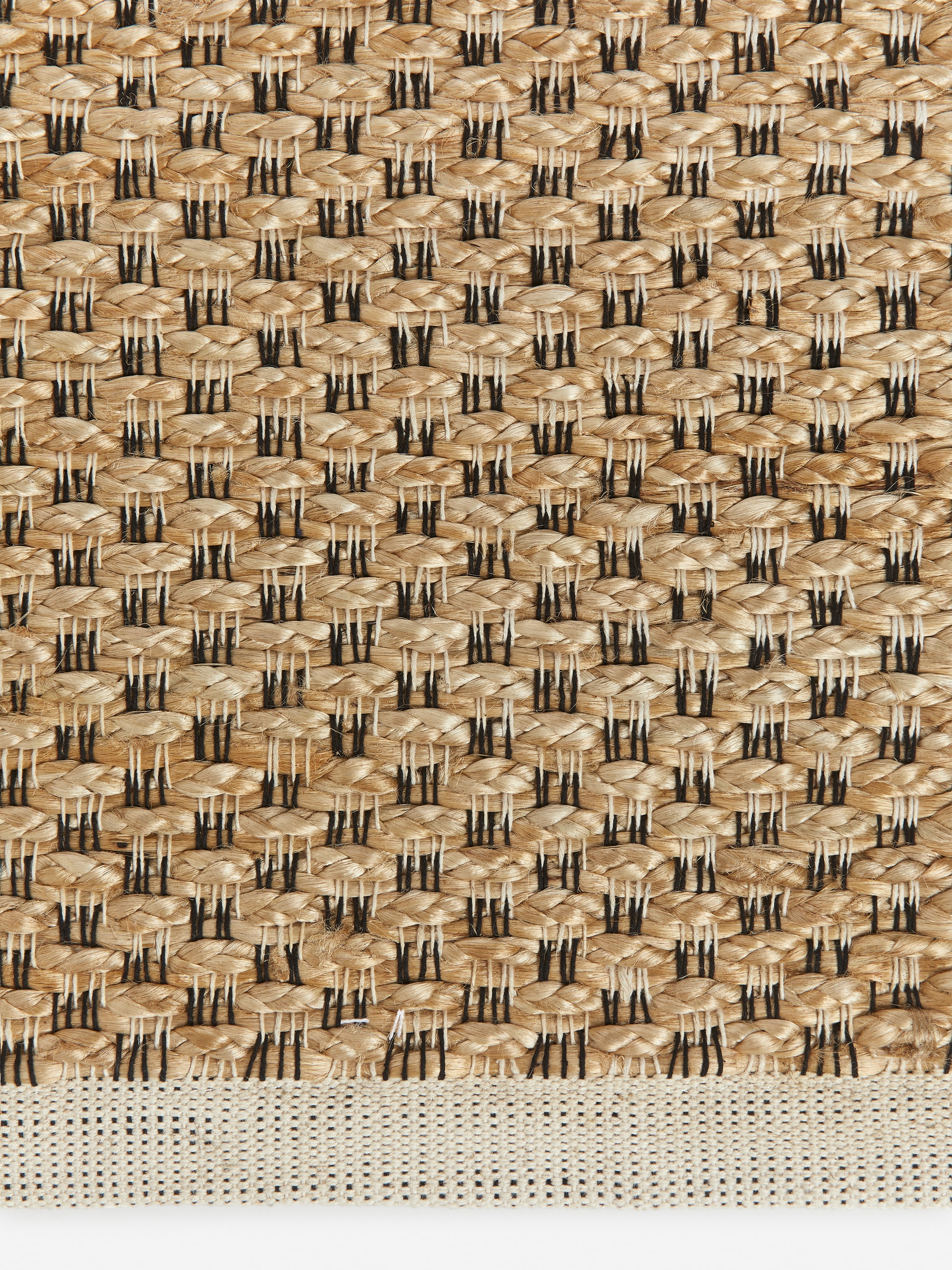 Состав: Джут 100%, Тканая часть: Хлопок 100% Материал: Джут Категория продаваемые: Гостиная, Прихожая Детали материала: Хлопок: Хлопок – мягкое и универсальное натуральное волокно, получаемое из хлопкового растения. Детальный материал: Джут: Джут — это натуральное лубяное волокно, получаемое из внешней части джутового растения. Размеры: 50x80 | Цвета: Бежевый/черный