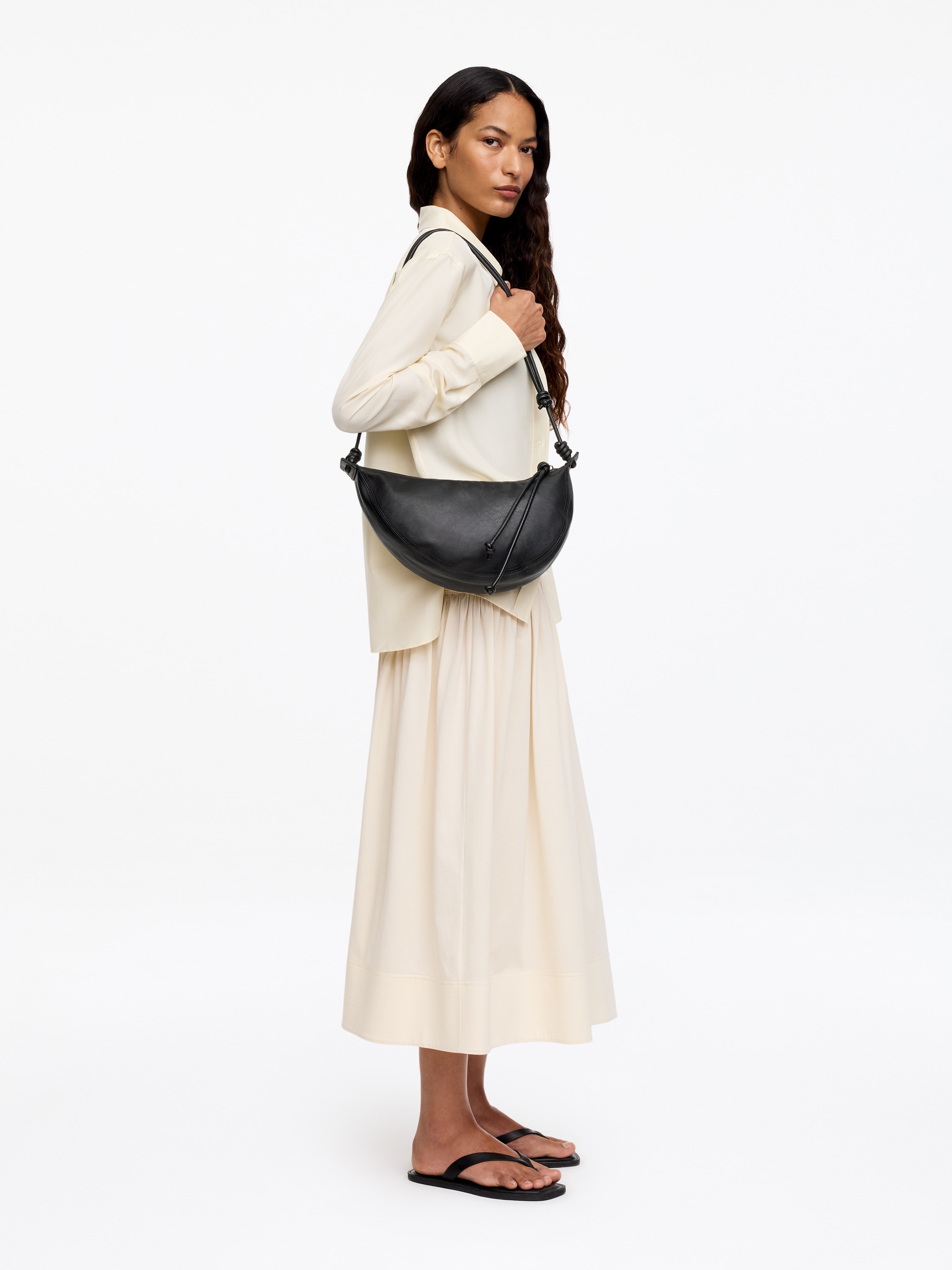 Кожаная сумка в форме полумесяца.