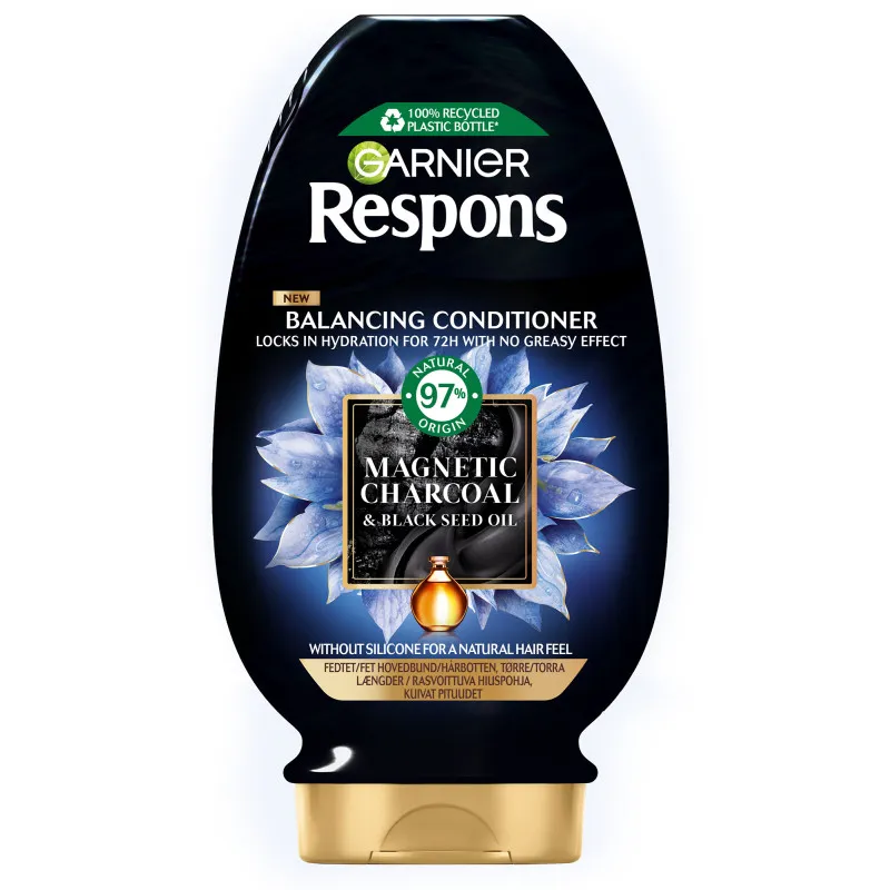Garnier Respons Magnetic Charcoal - это кондиционер, специально разработанный для восстановления баланса волос, склонных к сухим концам и жирной коже головы. Формула содержит очищающий уголь и масло чернушки, обеспечивая глубокое увлажнение и свежесть. 97% ингредиентов натурального происхождения. Веганская формула. Garnier официально одобрен Cruelty Free International в рамках программы Leaping Bunny. Объем упаковки 200 мл.