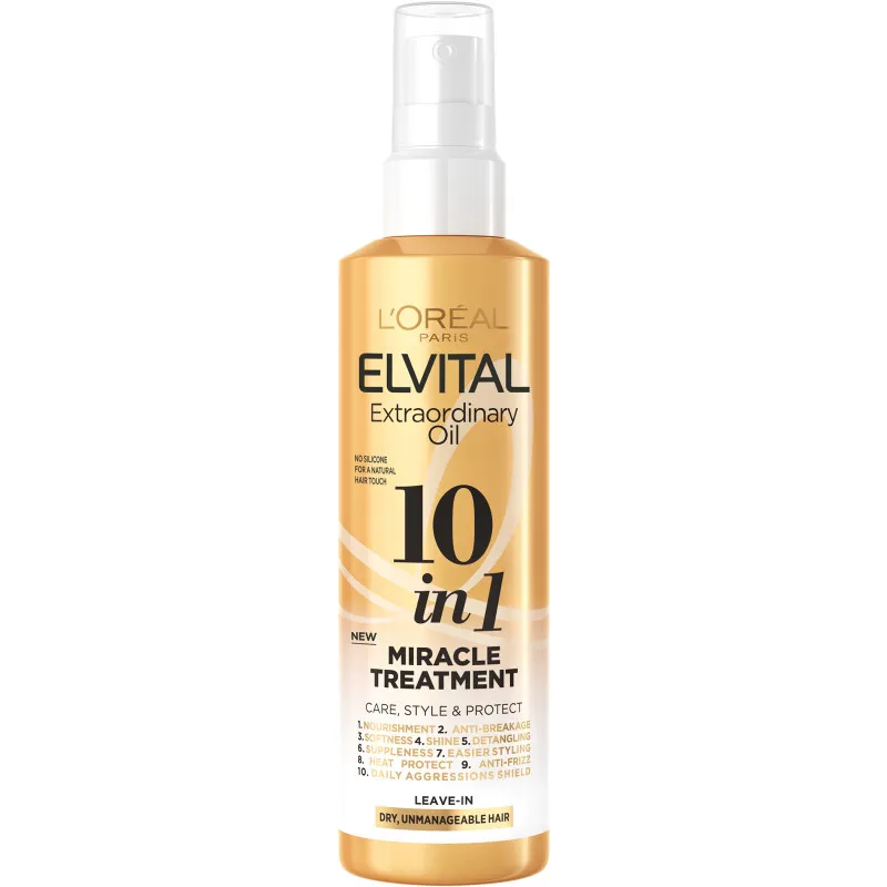 Loreal Elvital Extraordinary Oil 10-in-1 — это уходовый спрей для сухих и пушистых волос, который не требует смывания. Содержит питательные цветочные масла и не содержит силикона, что придает волосам естественное ощущение. Объем упаковки: 150 мл.
