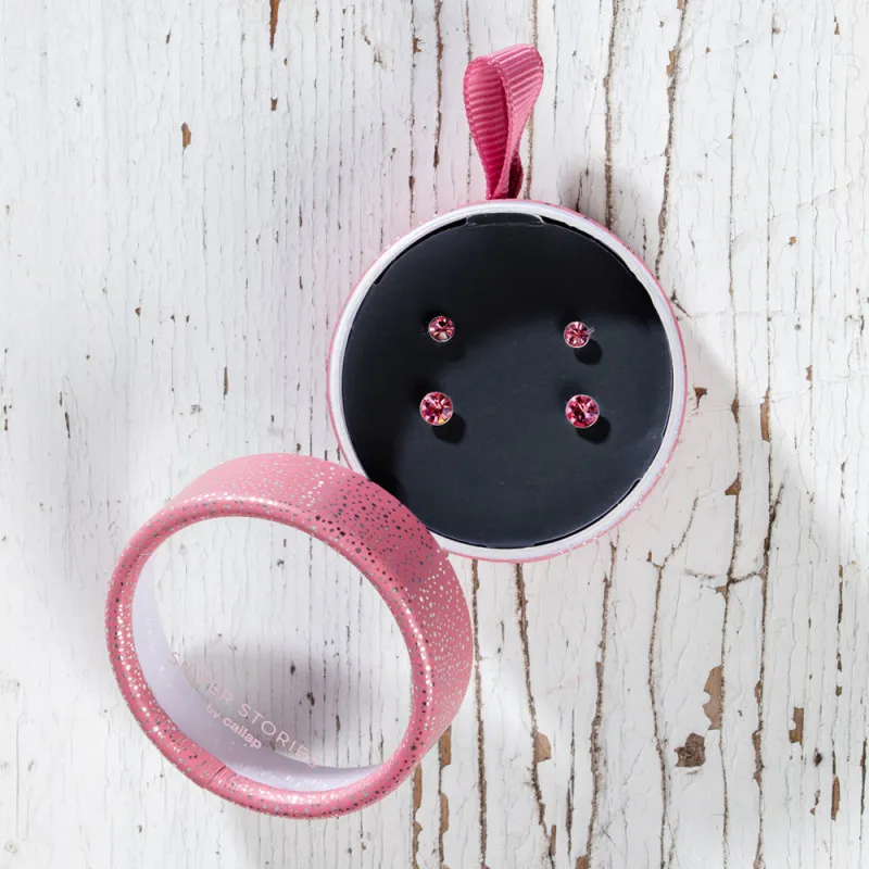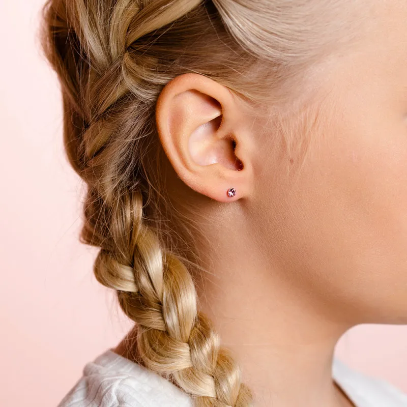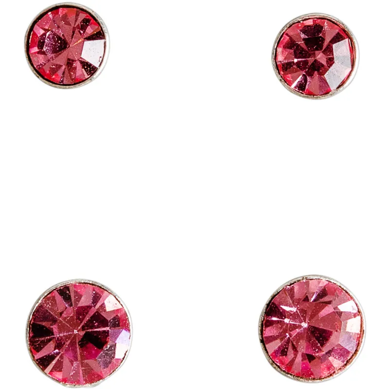 Эти красиво сверкающие серебряные сережки украшены круглыми розовыми стеклянными кристаллами. Набор сережек содержит 2 пары каменных сережек разного размера.