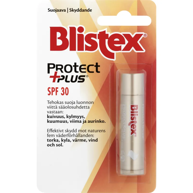Blistex Protect Plus обеспечивает вашим губам исключительную защиту от ветра, мороза, солнца, сухости и жары. Глицерин удерживает влагу, масло зародышей пшеницы эффективно увлажняет, а масло календулы защищает обветренные губы. Этот бальзам для губ имеет высокий уровень защиты SPF 30, который предотвращает вредное воздействие UVA и UVB лучей. Защитный слой на губах не позволяет ни холодному ветру, ни палящему солнцу повредить нежную кожу губ. Упаковка: 4,25 г.