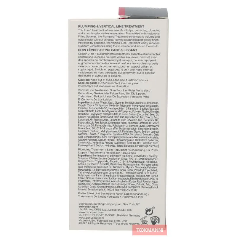 Антивозрастное средство Strivectin помогает восстановить естественную упругость губ, улучшая их текстуру и цвет. Насыщенные активными компонентами, такие как пептиды и гиалуроновая кислота, они глубоко увлажняют и питают нежную кожу, обеспечивая ей длительную защиту от внешних агрессивных факторов.