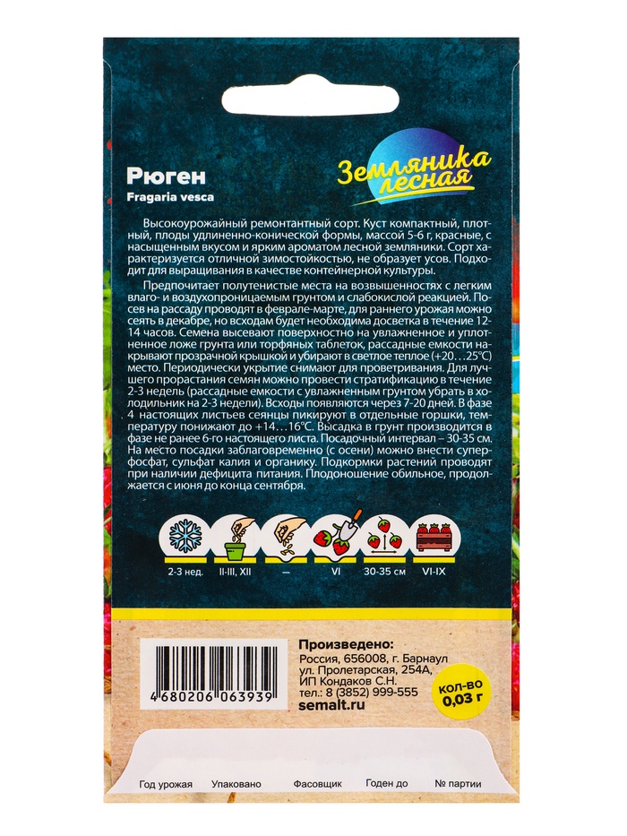 Ягода Земляника Рюген ремонтантная/Сем Алт/цп 0,03 гр. НОВИНКА — Характеристики