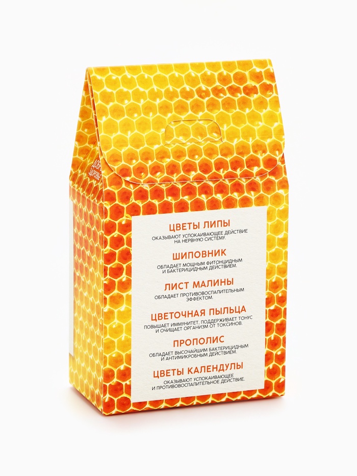 Состав: прополис, цветы липы, лист малины, цветочная пыльца, шиповник майский, календула (цветы).