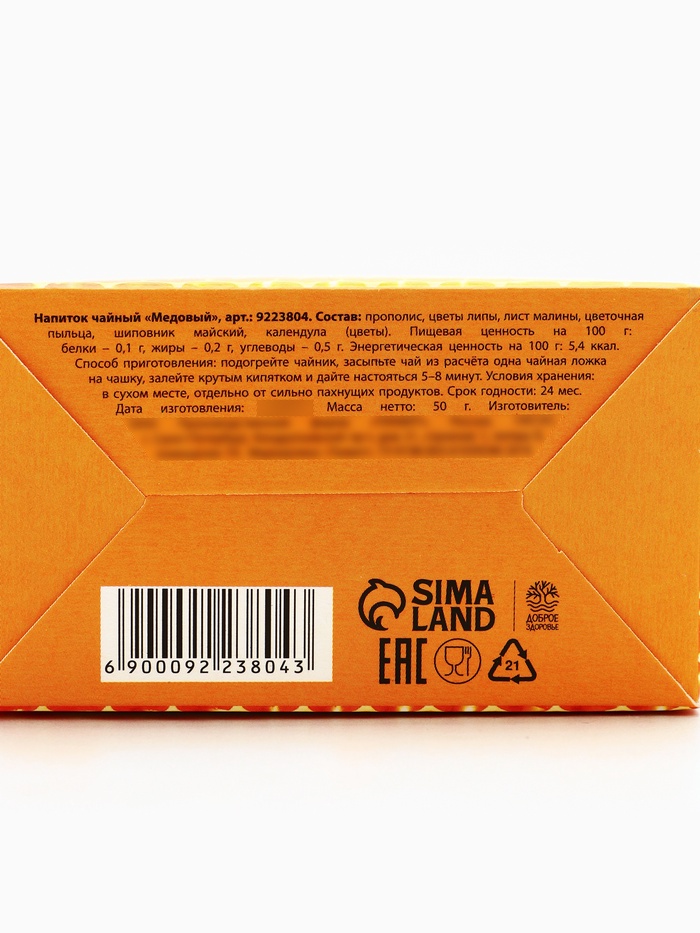 Ягодно-травяной чай «Медовый»: цветы липы, шиповник, лист малины, цветочная пыльца, прополис, цветы календулы, 50 г — Характеристики