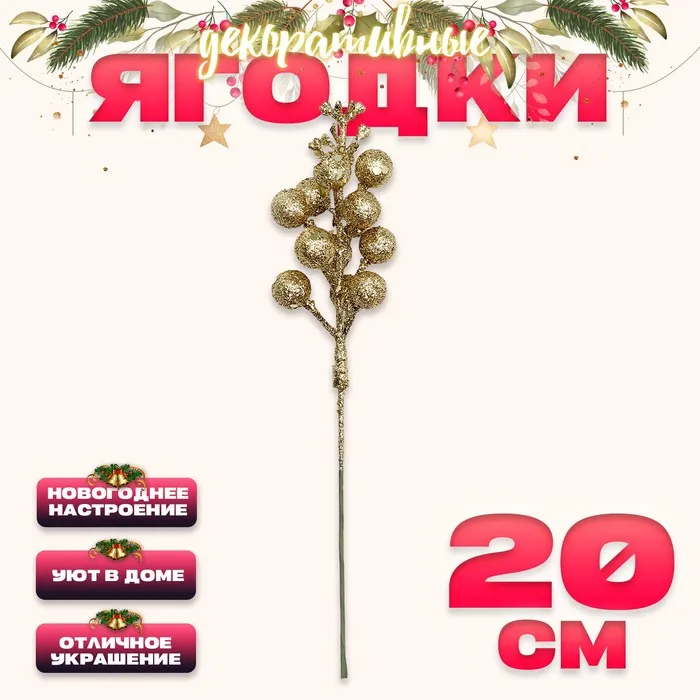 Ягоды для декора, золотого цвета, 4,5 × 4,5 × 20 см