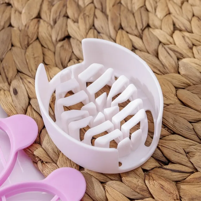 Яйцерезка изготовлена из прочного пластика и имеет три съемные насадки разного размера, что позволяет вам выбрать наиболее подходящий вариант для нарезки. Яйцерезка легко моется и компактно хранится.