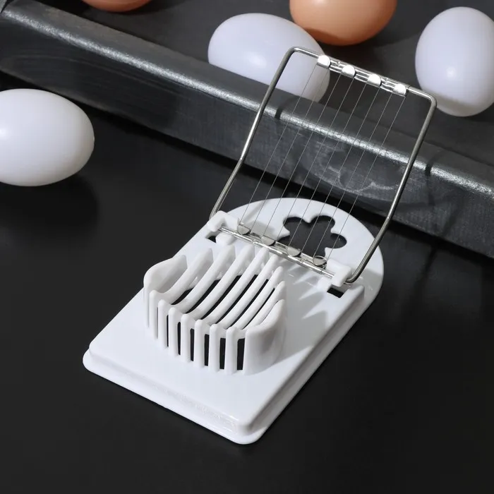 Яйцерезка изготовлена из прочного пластика и имеет металлические лезвия, которые обеспечивают чистый и ровный срез. Яйцерезка имеет компактный размер и удобна в хранении.