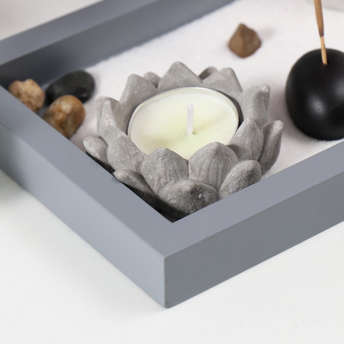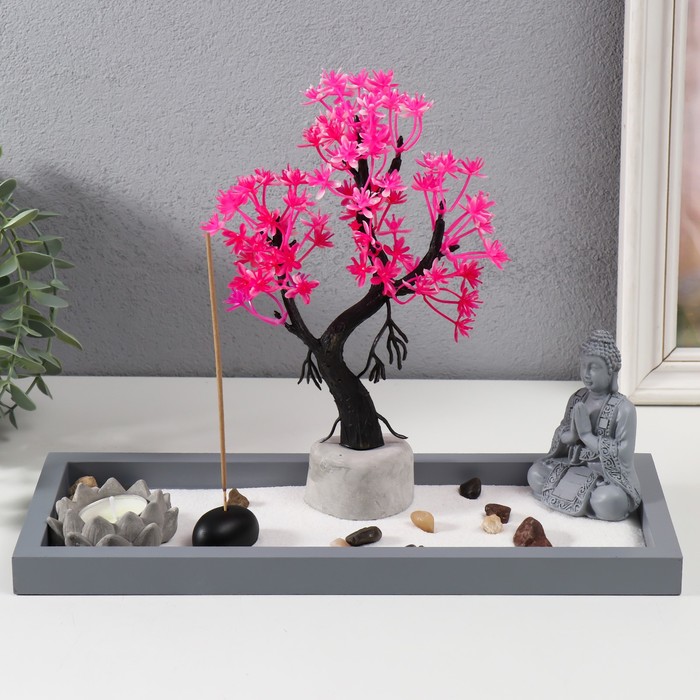 Японский сад камней настольный «Дзен. Будда медитирует у сакуры», со свечой, набор аксессуаров, 32×13×22 см — Характеристики