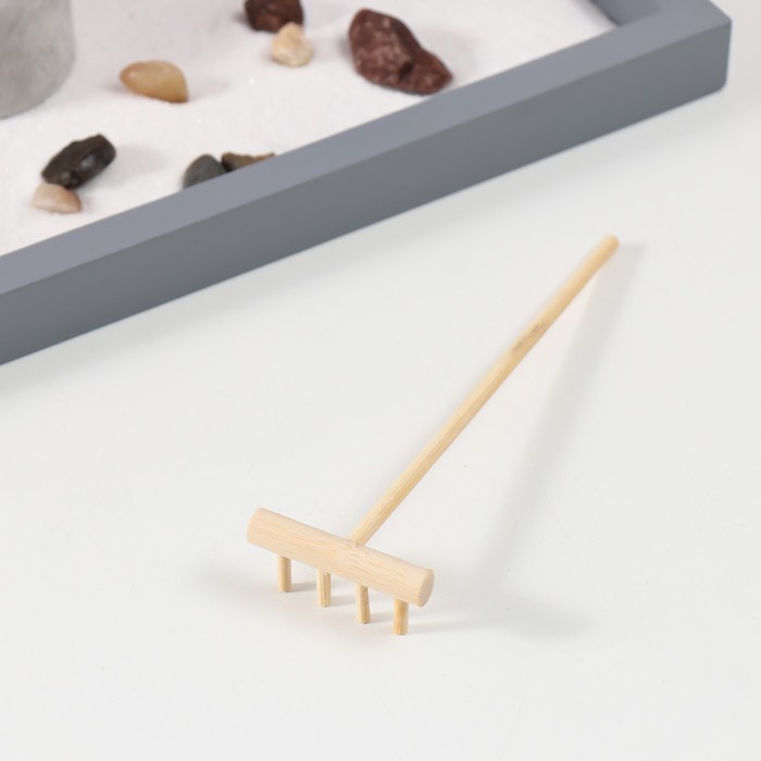 Это изделие не просто украшение интерьера — оно создаёт пространство для размышлений и отдыха. Работа с песком, формирование узоров и использование благовоний помогают отвлечься от повседневных забот и найти внутреннюю гармонию. Размер композиции (32×13×22 см) позволяет легко разместить её на рабочем столе, полке или тумбочке.