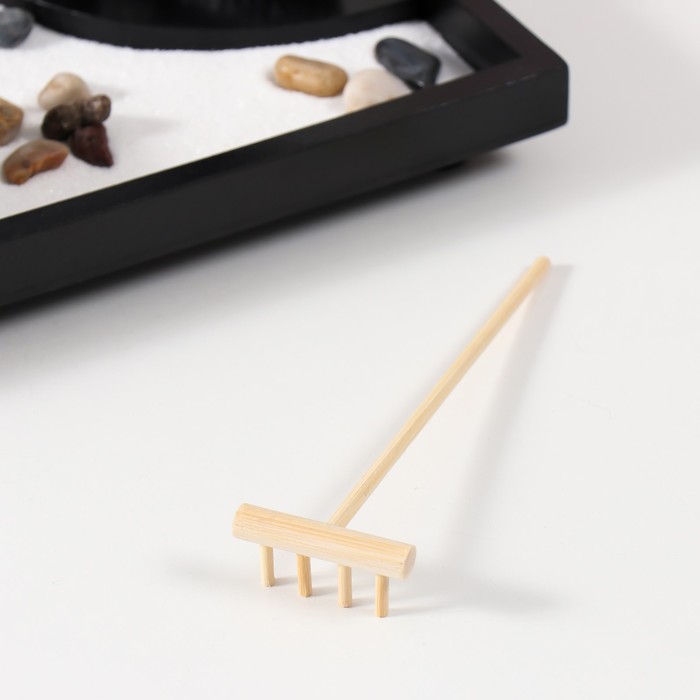 Польза для души и пространства: Этот сад камней — не просто декоративный элемент, а инструмент для релаксации и медитации. Он помогает снять стресс, сосредоточиться и найти вдохновение в повседневной жизни. Такой набор станет идеальным подарком для ценителей восточной эстетики или стильным акцентом в вашем доме.