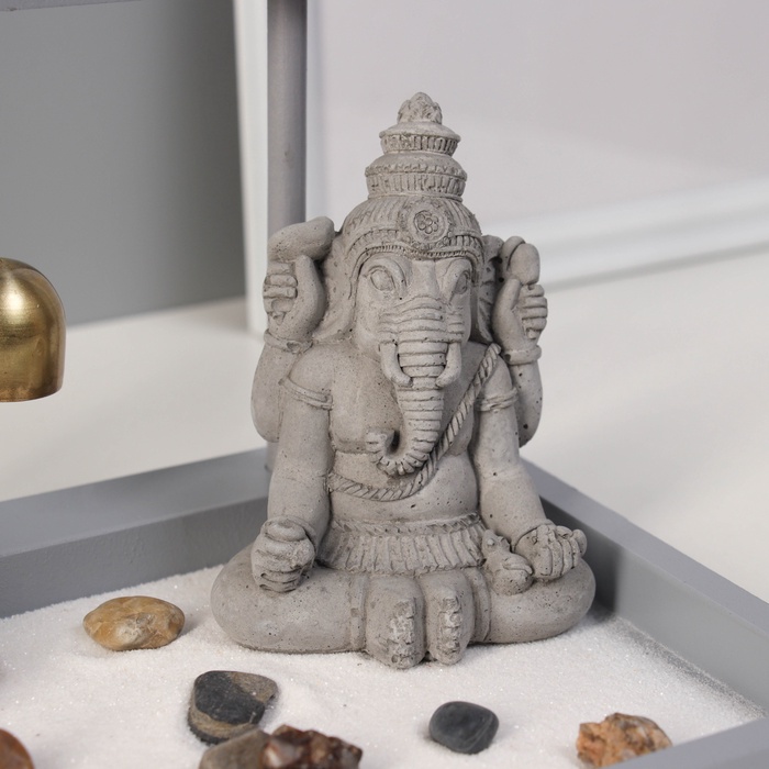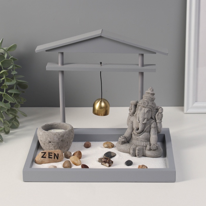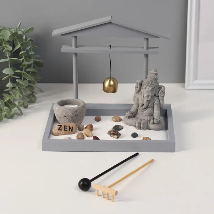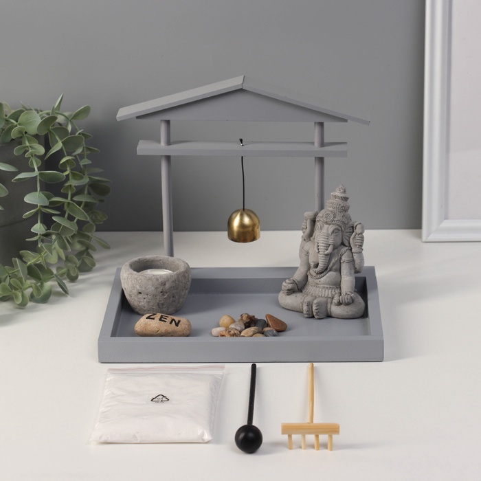 Японский сад камней настольный «Дзен. Ганеша у храма», с набором аксессуаров, колокольчик, 16×22×18.5 см — Характеристики