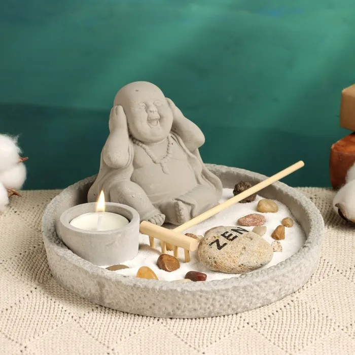 Японский сад камней настольный «Дзен. Юкари», со свечой, набор аксессуаров, 17×17×8 см — Характеристики