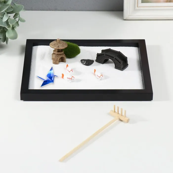 Представьте себе возможность создавать миниатюрные пейзажи прямо на своём рабочем столе. Этот компактный сад включает символический мостик и оригами, что создаёт атмосферу спокойствия и умиротворения. Изделие станет идеальным дополнением для любого интерьера, особенно если вы цените японскую эстетику.