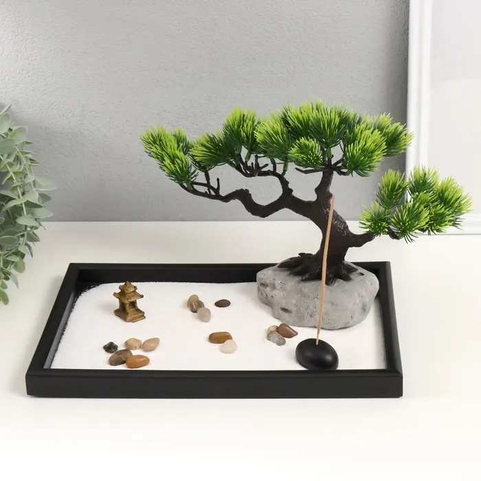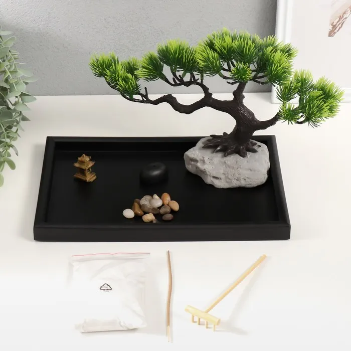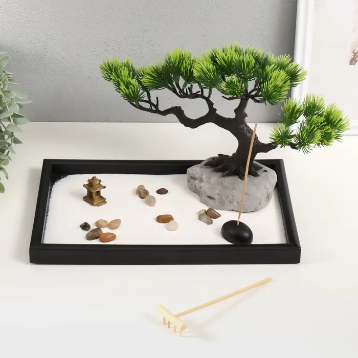Японский сад камней настольный «Дзен. Раскидистое дерево в саду», набор аксессуаров, 20×30×18.5 см — Характеристики