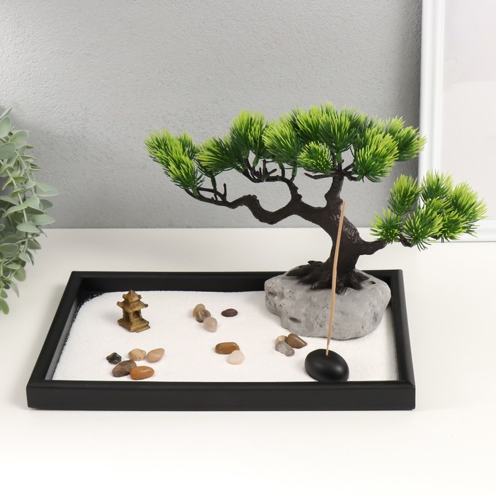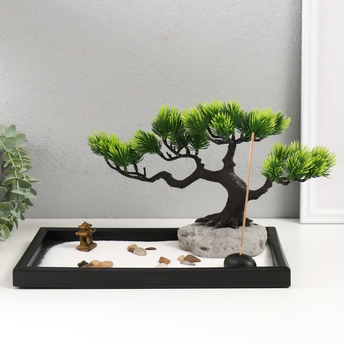 Японский сад камней настольный «Дзен. Раскидистое дерево в саду», набор аксессуаров, 20×30×18.5 см