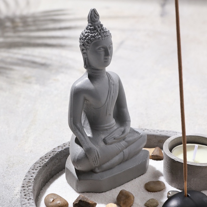 Японский сад камней настольный «Дзен. Будда в саду», со свечой, набор аксессуаров, 13×19×19 см