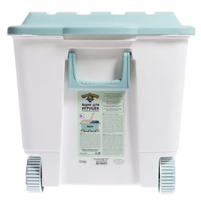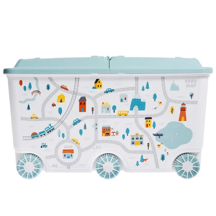 Ящик для игрушек на колесах «Путешествие», с декором, 685 × 395 × 385 мм, цвет светло-голубой — Характеристики