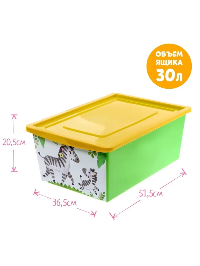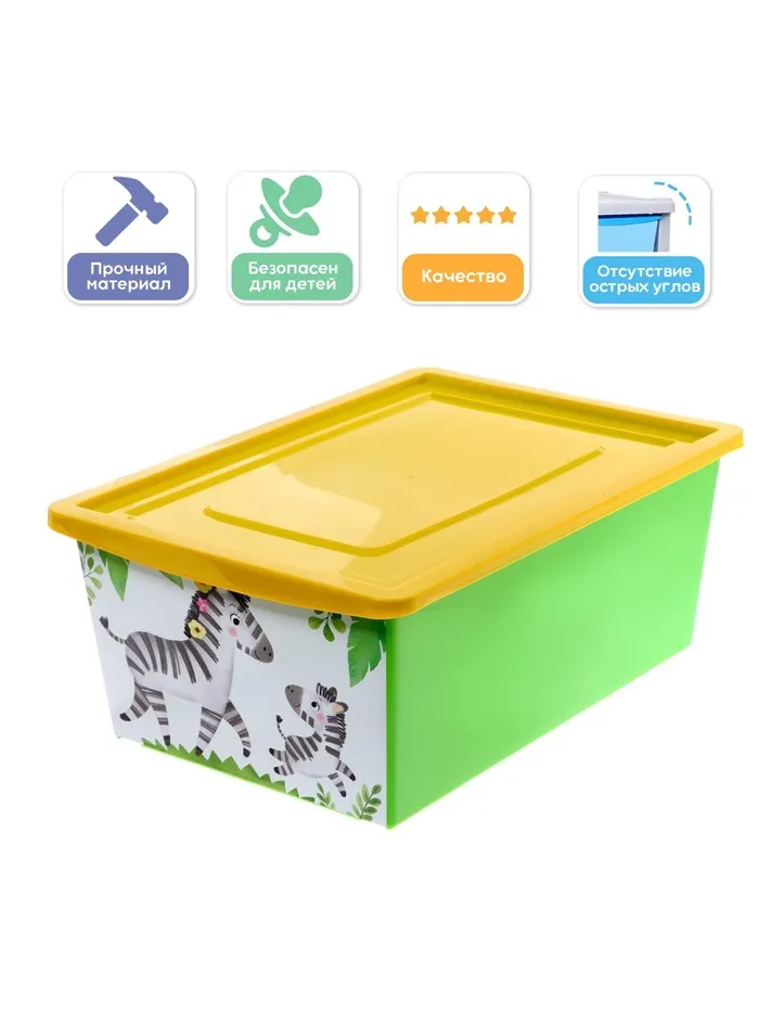 Яркий ящик подходит для хранения игрушек, книжек, канцтоваров и детских вещей. Имеет широкие бортики, его удобно доставать даже малышу.