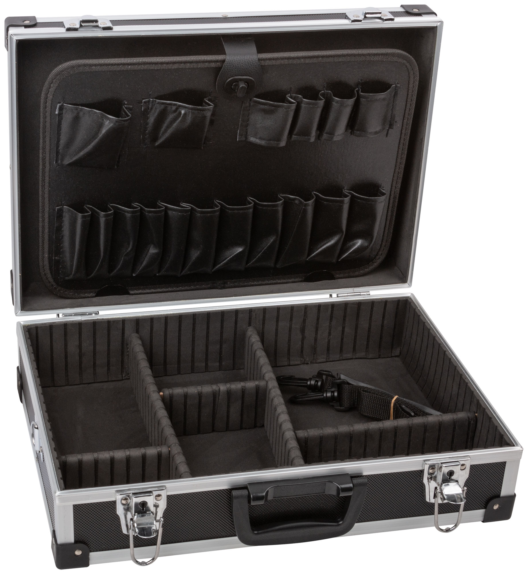 Изготовлен из прочного алюминия, этот ящик не только легкий, но и устойчив к внешним воздействиям. Внутренние перегородки можно настроить под свои нужды, что делает его универсальным решением для самых разных задач.
