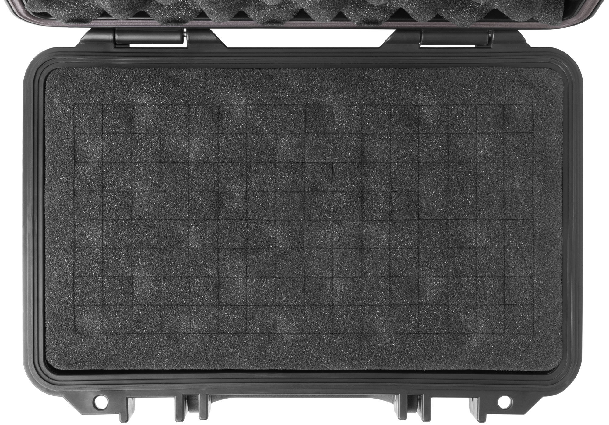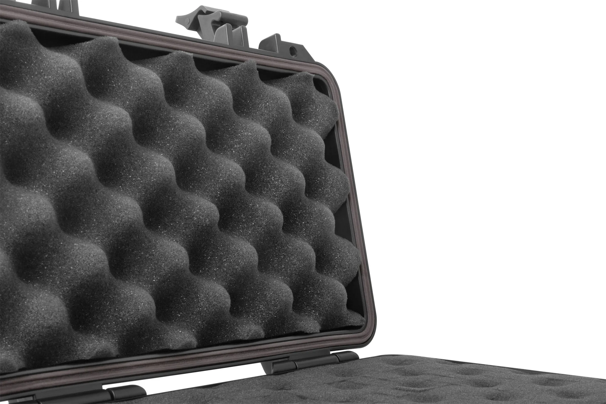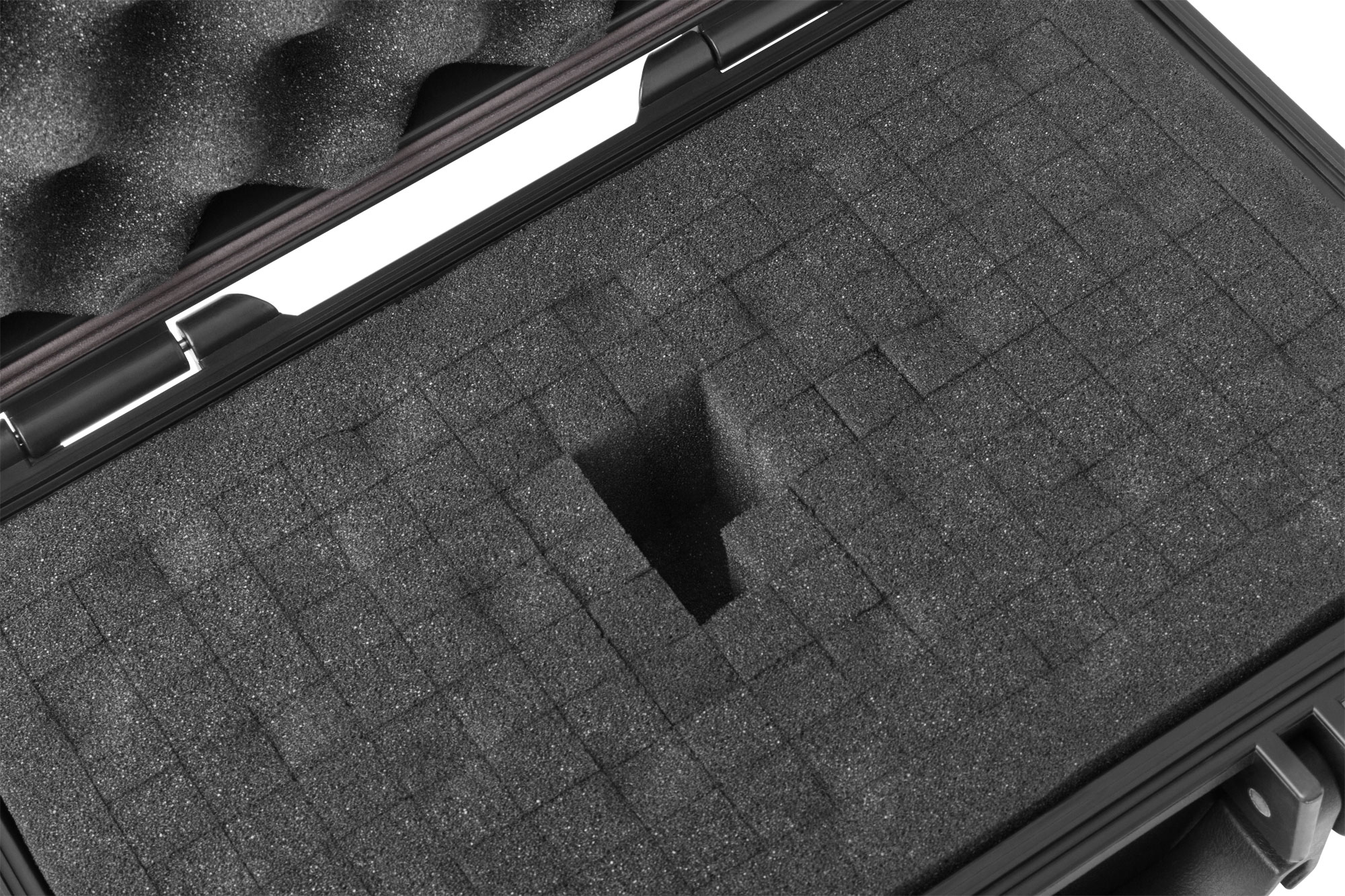 Конструкция ящика выполнена из ударопрочного полипропилена, что гарантирует долговечность и устойчивость к внешним воздействиям. Внутренние поролоновые вставки формируют ниши для надежной фиксации содержимого.