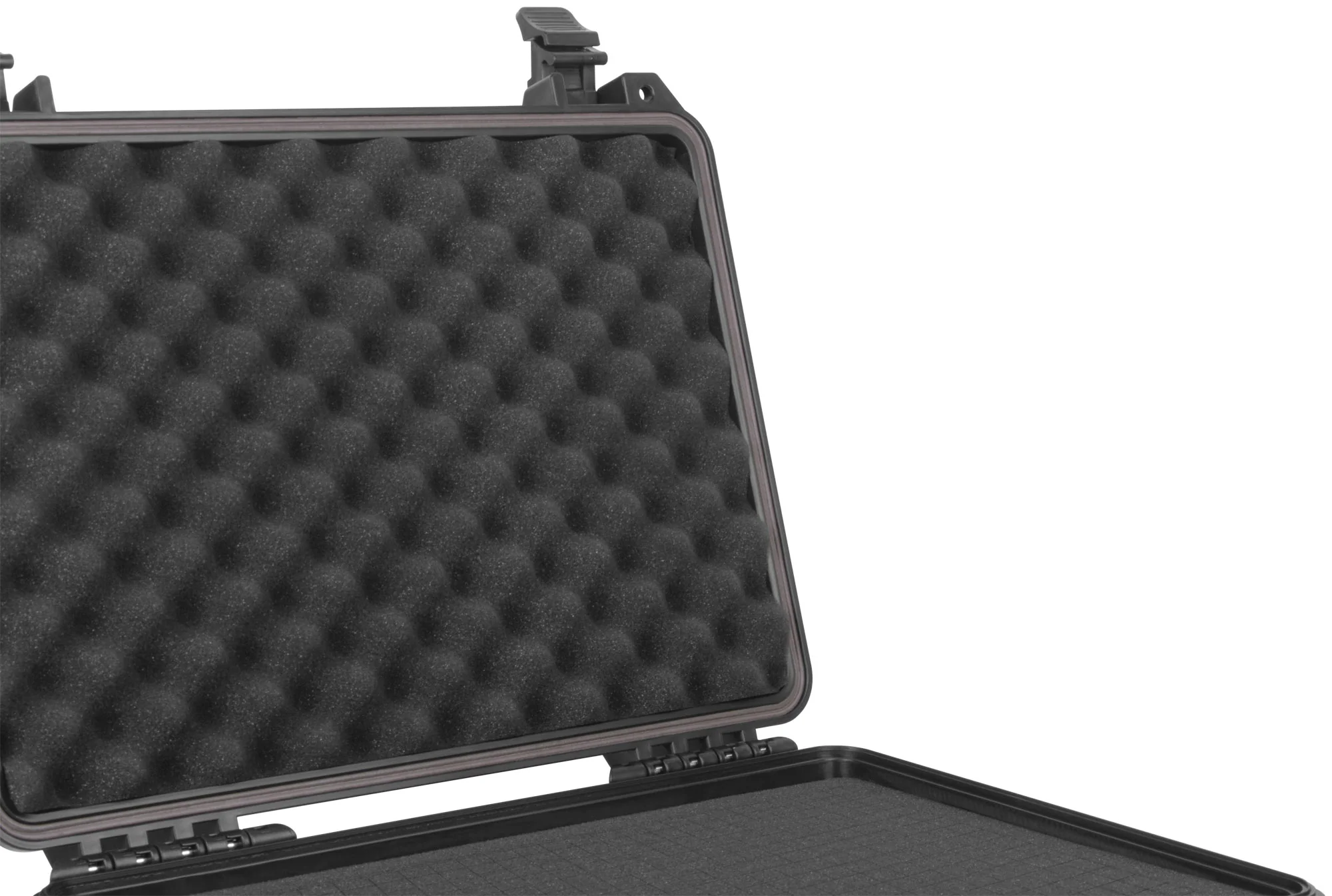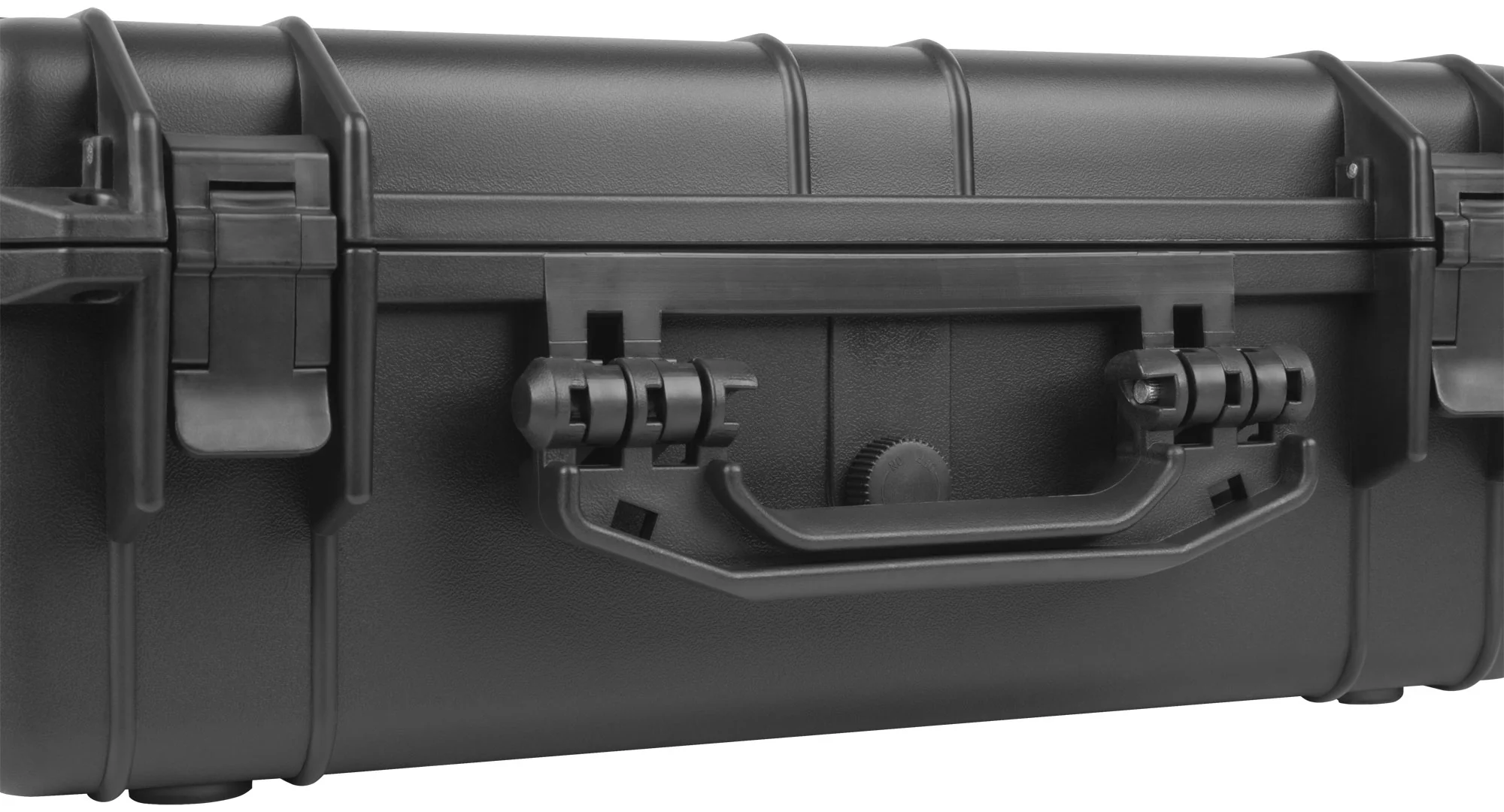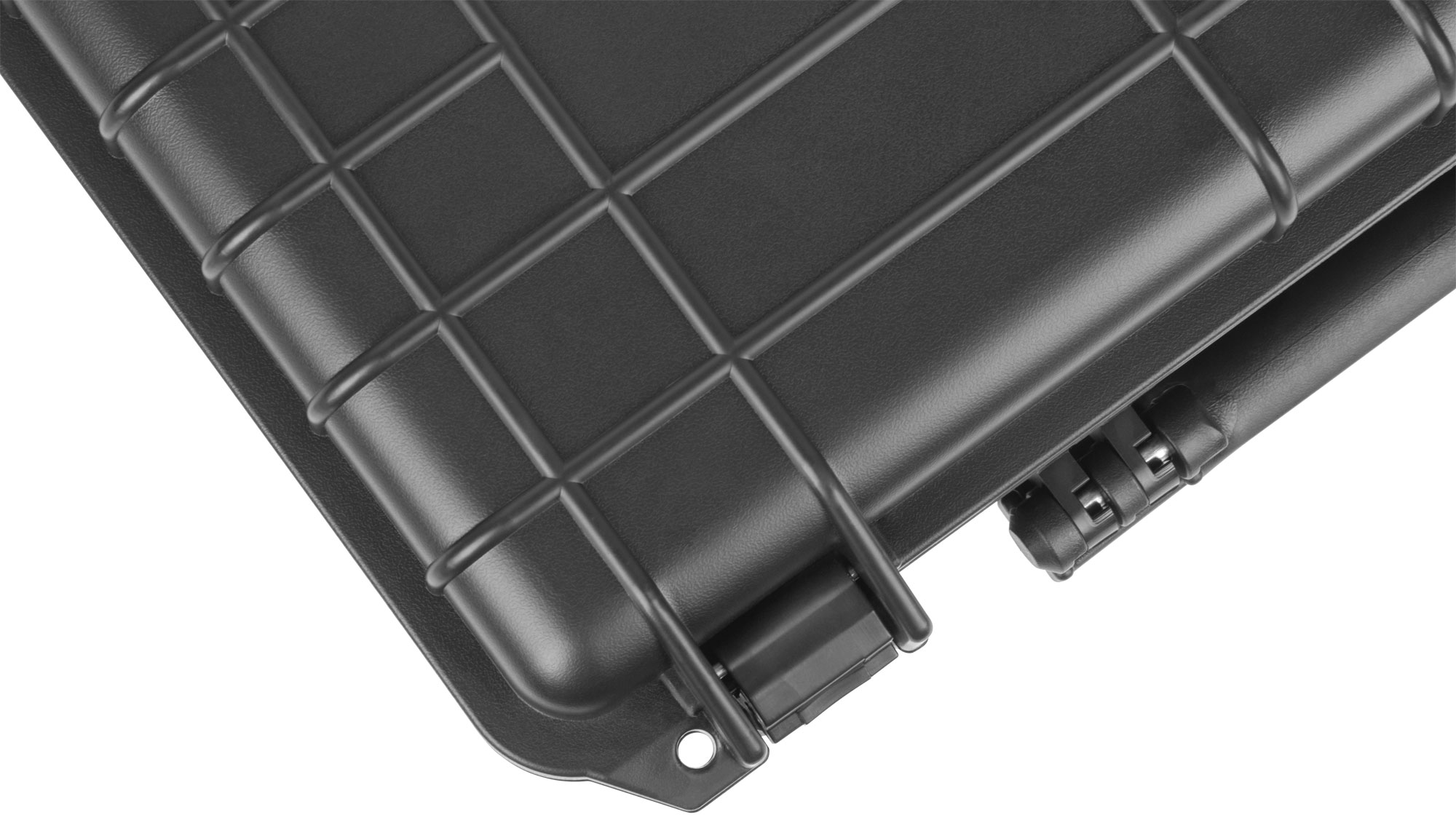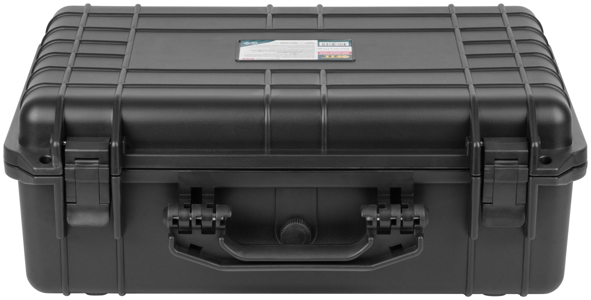 Ящик изготовлен из ударопрочного полипропилена, что делает его устойчивым к механическим повреждениям. Ребра жесткости и утолщенные стенки усиливают конструкцию, а поролоновая фиксирующая вставка позволяет формировать ниши для безопасной укладки содержимого. Дополнительную защиту обеспечивает степень пылезащиты и влагозащиты IP66.