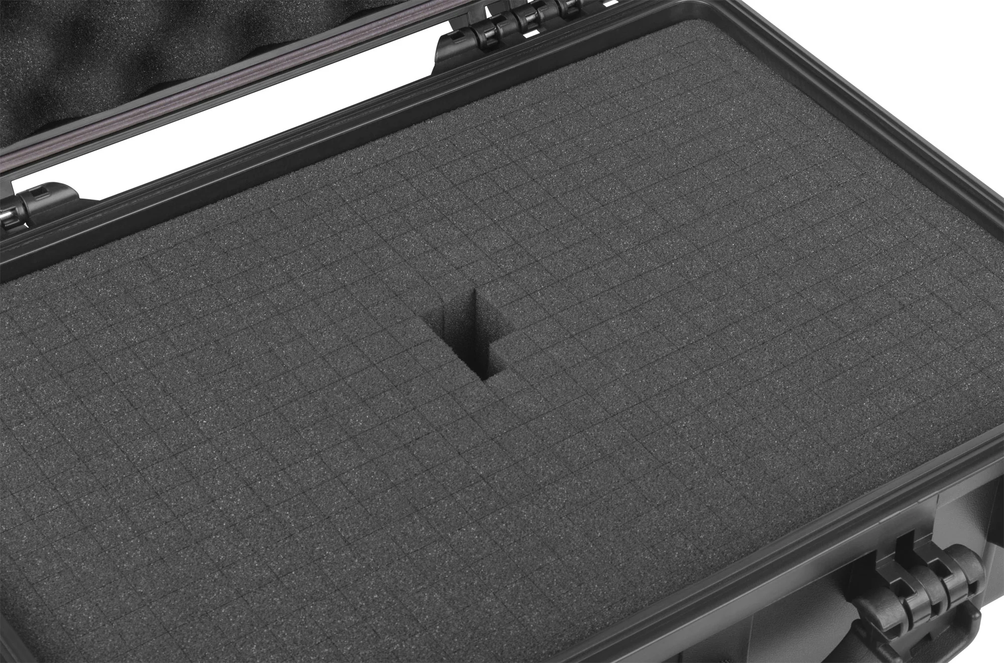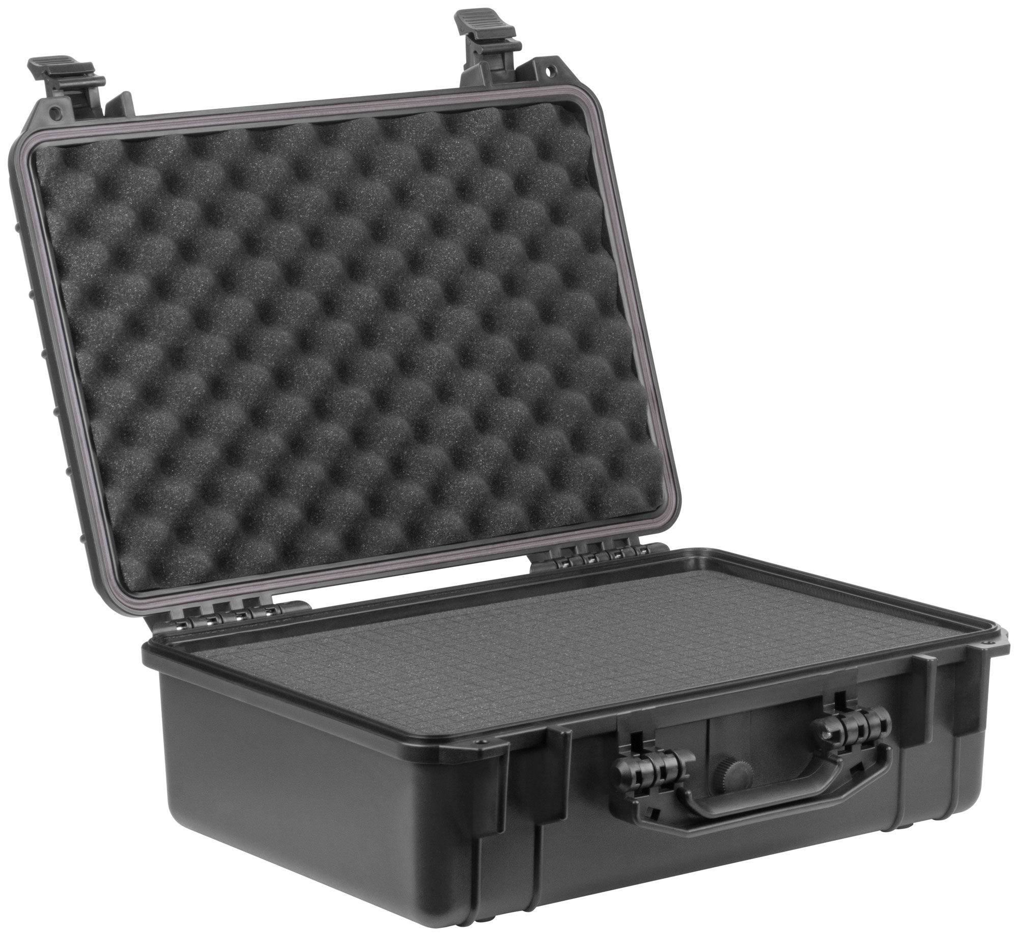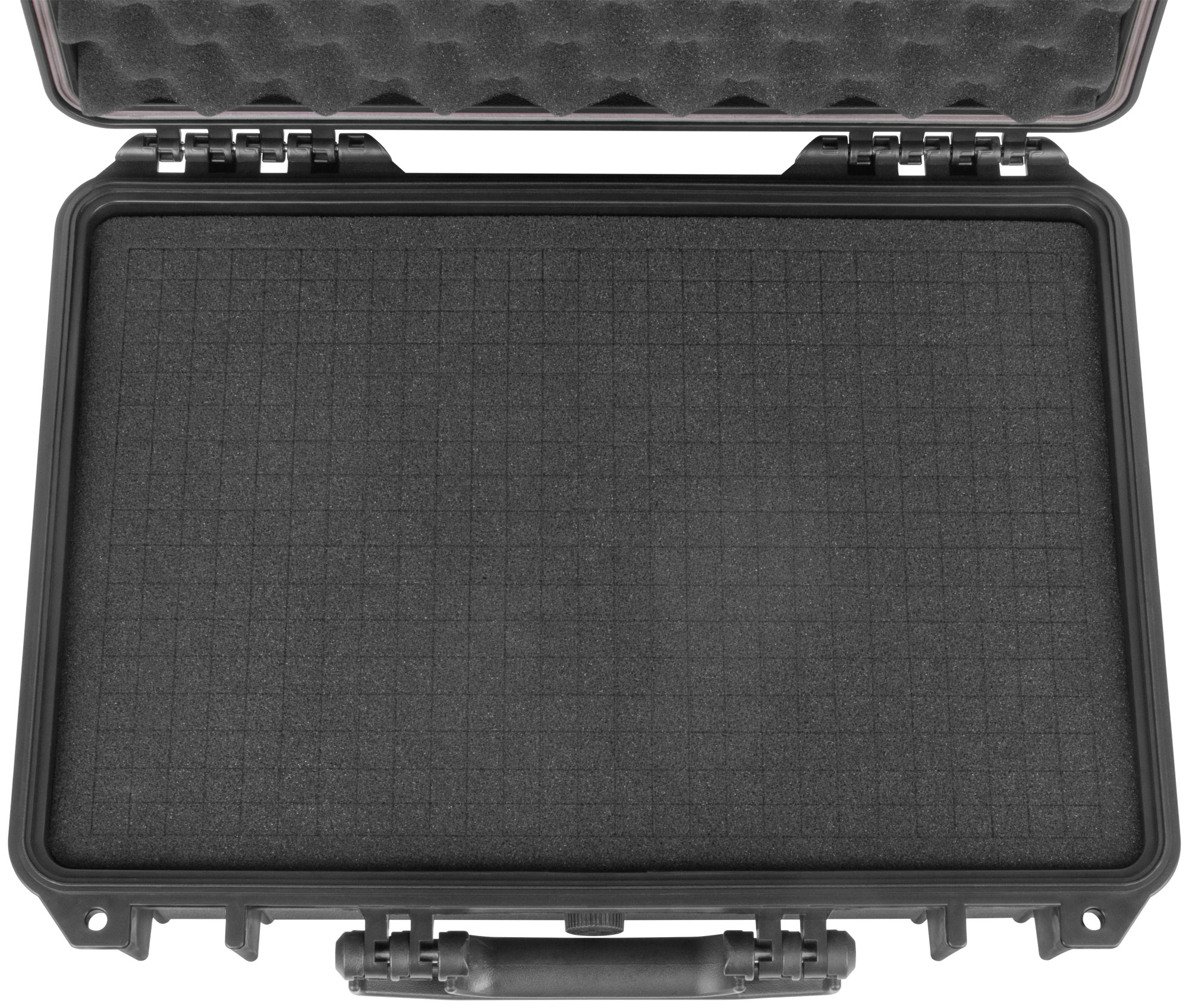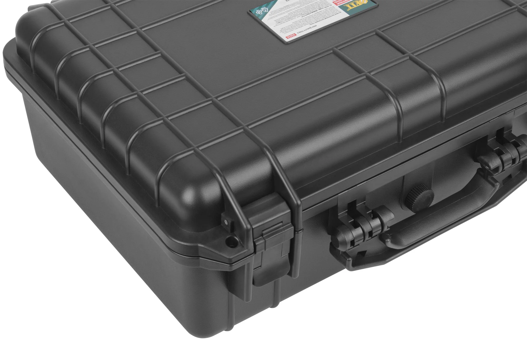 Ящик изготовлен из ударопрочного полипропилена, что делает его устойчивым к механическим повреждениям. Ребра жесткости и утолщенные стенки усиливают конструкцию, а поролоновая фиксирующая вставка позволяет формировать ниши для безопасной укладки содержимого. Дополнительную защиту обеспечивает степень пылезащиты и влагозащиты IP66.