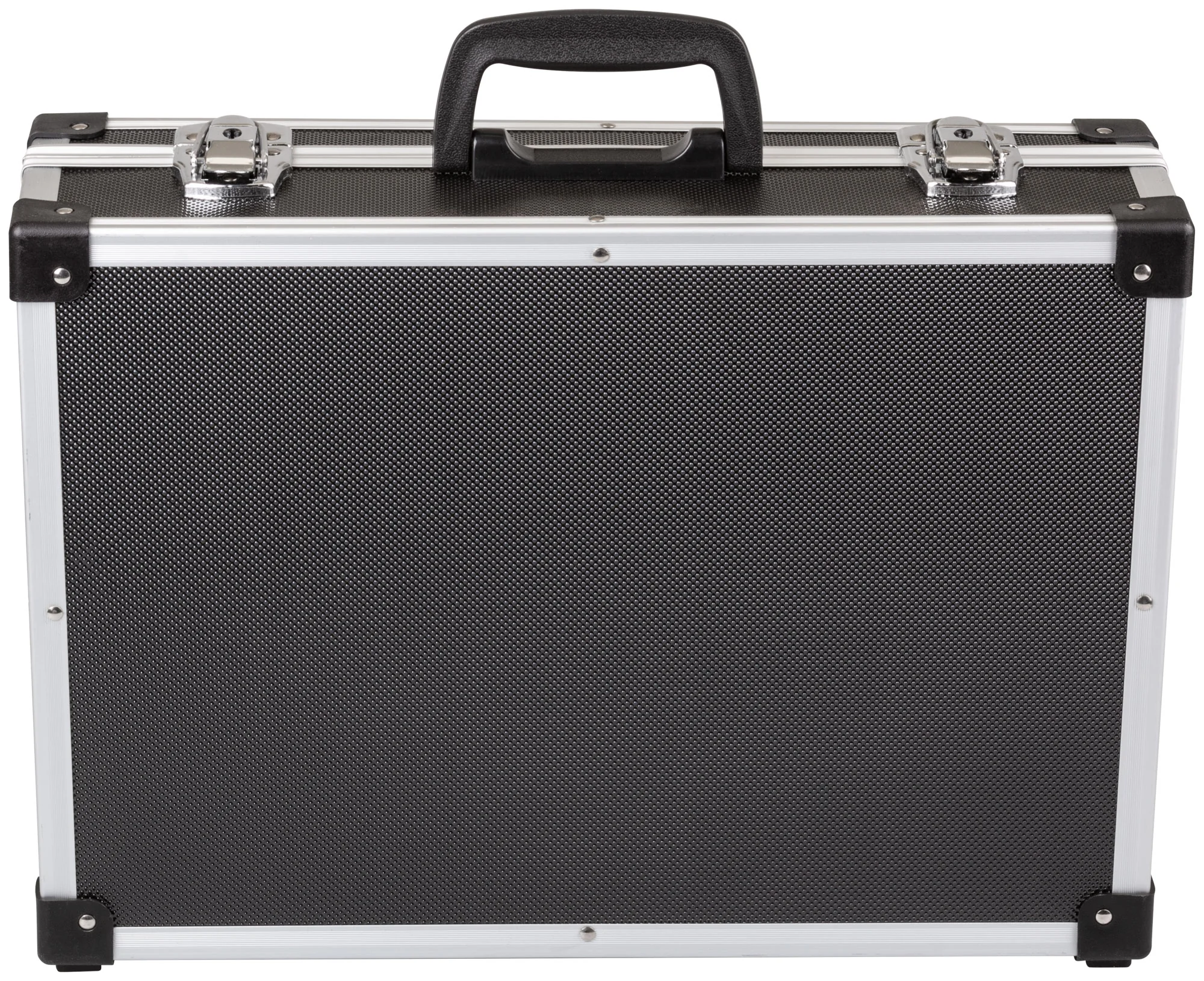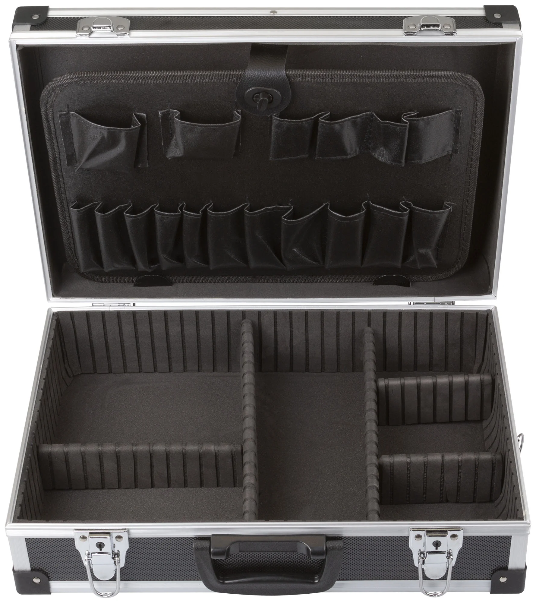 Ящик изготовлен из прочного пластика и усилен алюминием, что обеспечивает дополнительную прочность и долговечность. Внутренние перегородки переставные, что позволяет удобно организовать пространство под ваши нужды. Отделка из мягкого пористого материала предотвращает повреждения инструментов.
