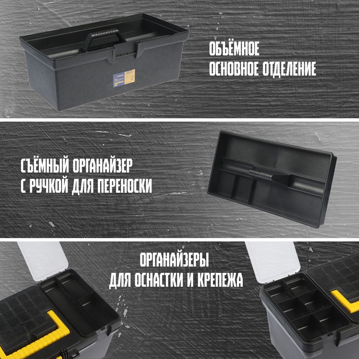 Ящик для инструмента ТУНДРА, 16", 390 х 200 х 170 мм, пластиковый, лоток, два органайзера — Характеристики