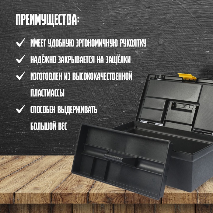 Ящик для инструментов от торговой марки «ТУНДРА» предназначен для хранения и транспортировки инструментов.