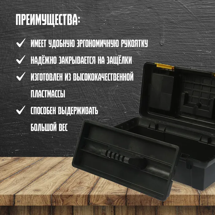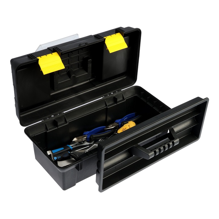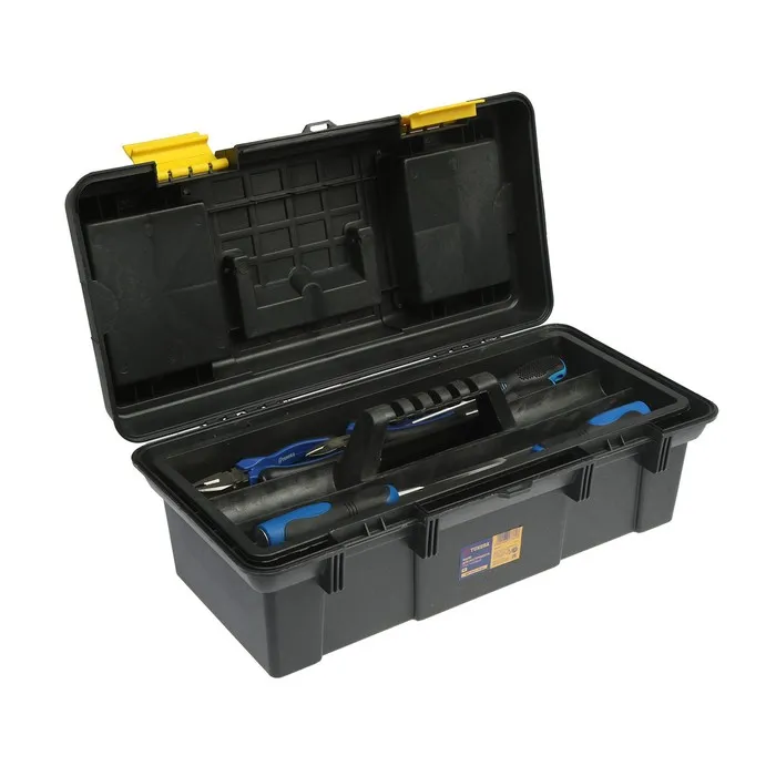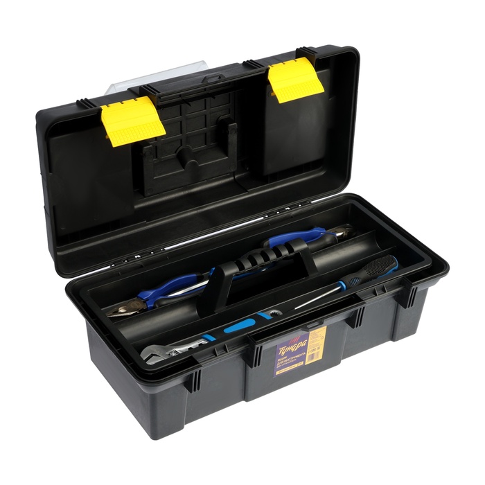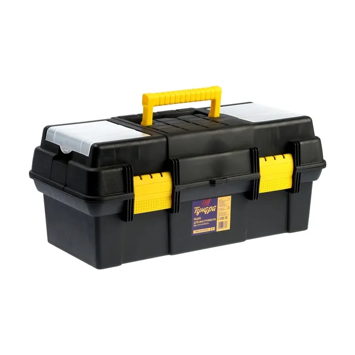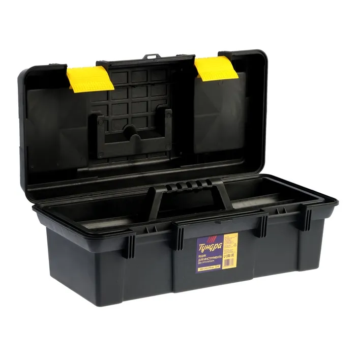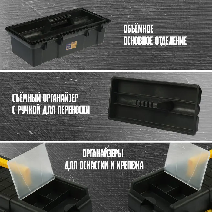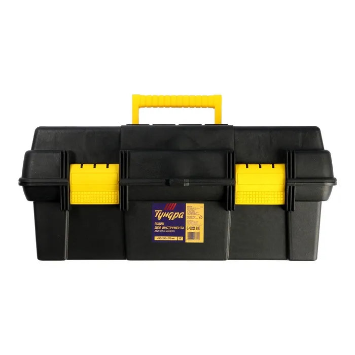 Ящик для инструмента ТУНДРА, 19", 490×245×215 мм, пластиковый, лоток, два органайзера — Характеристики