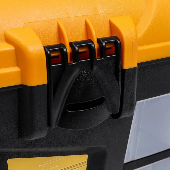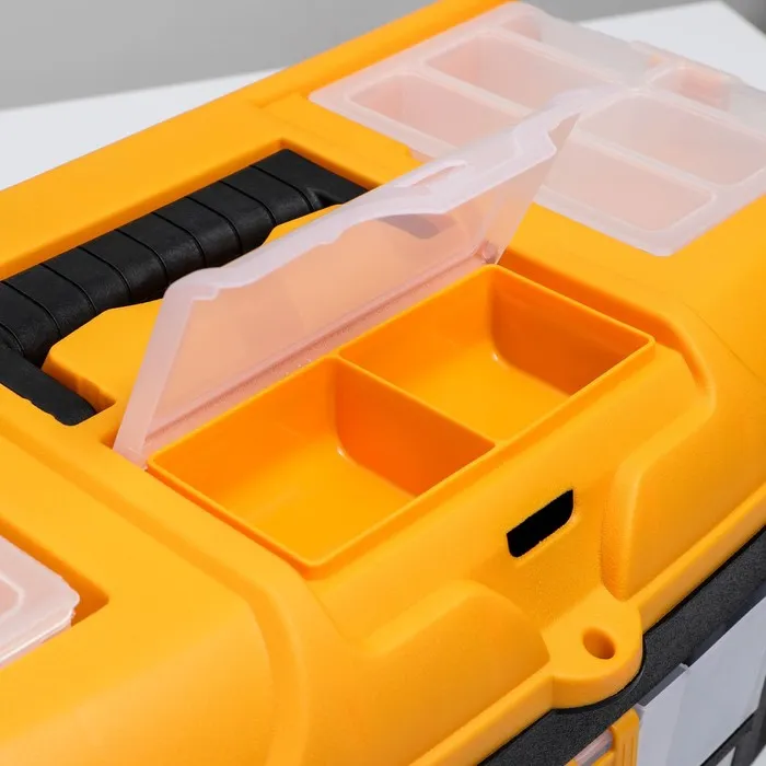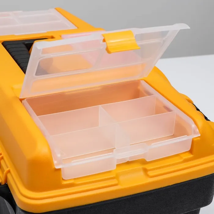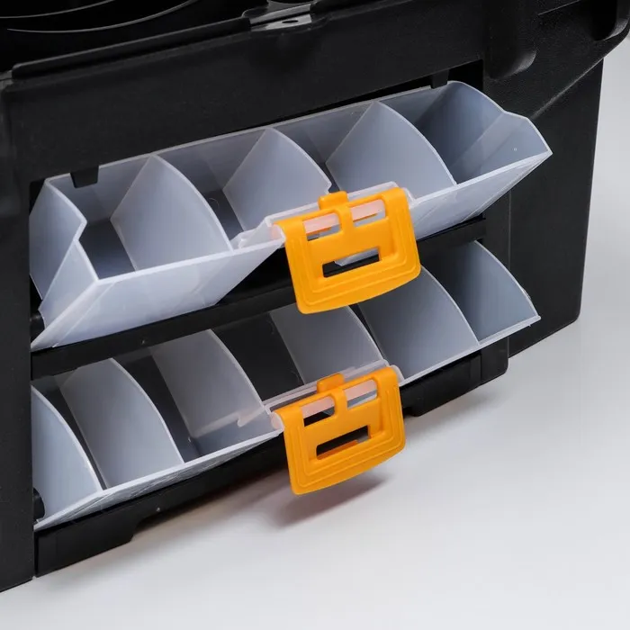 В ящике предусмотрен вкладыш для инструментов с внутренними перегородками, вместительное отделение позволяет организовать хранение множества инструментов.