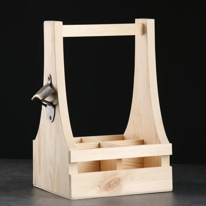 Ящик для пива 19×18×30 см с открывашкой, под 4 бутылки, деревянный — Характеристики