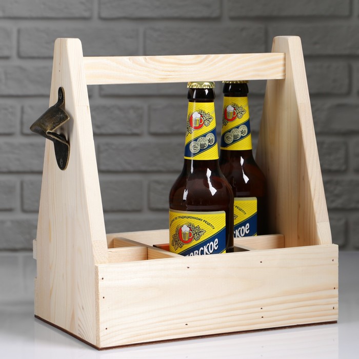 Ящик для пива 27×18×30 см с открывашкой, под 6 бутылок, деревянный — Характеристики