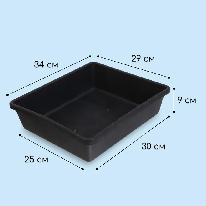 Ящик для рассады, 35 x 30 x 9 см, объемом 6,5 л, выполнен из прочного пластика черного цвета. Стильный, удобный и функциональный помощник для садоводов. Благодаря компактным размерам он идеально подходит для размещения на подоконниках, стеллажах или в теплицах. Черный цвет подчеркивает его элегантный вид и помогает лучше впитывать тепло, что особенно важно для растений.