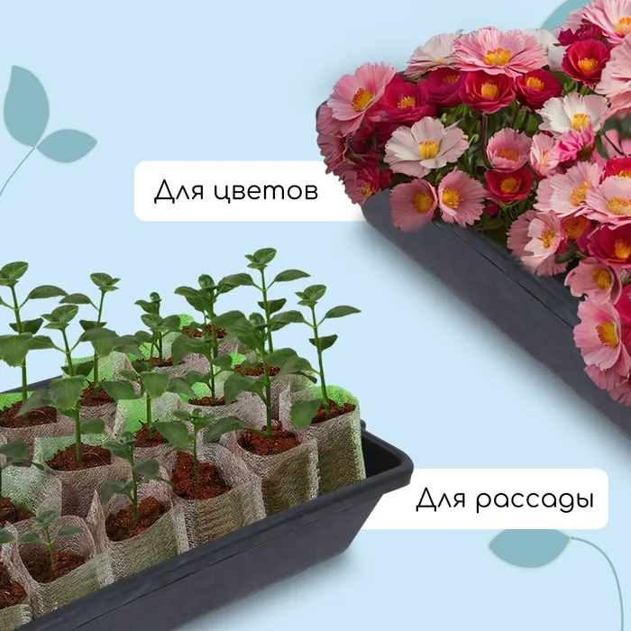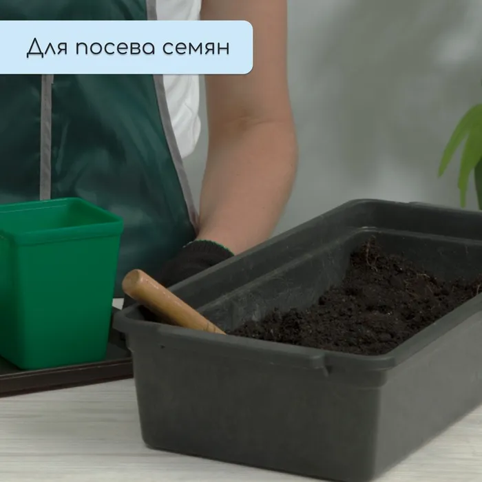 - Ящик можно использовать в качестве глубокого поддона для других ёмкостей: внутри можно разместить горшки, кассеты и мешки для рассады.