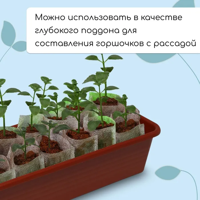 - Ящик можно использовать в качестве глубокого поддона для других ёмкостей: внутри можно разместить горшки, кассеты и мешки для рассады.