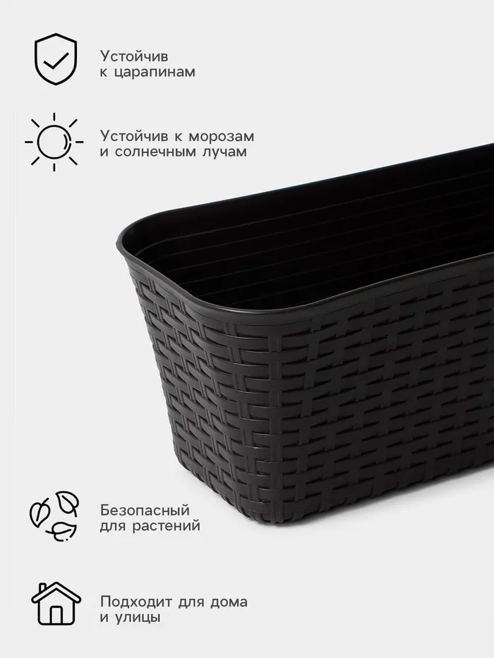 Ящик для цветов балконный «Ротанг», 12 л, 57.5×18×16 см, пластик, коричневый — Характеристики