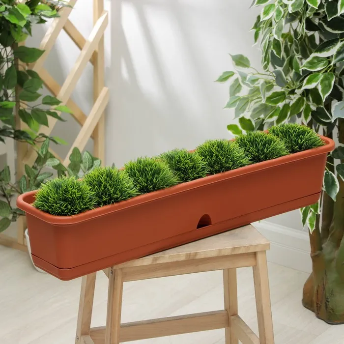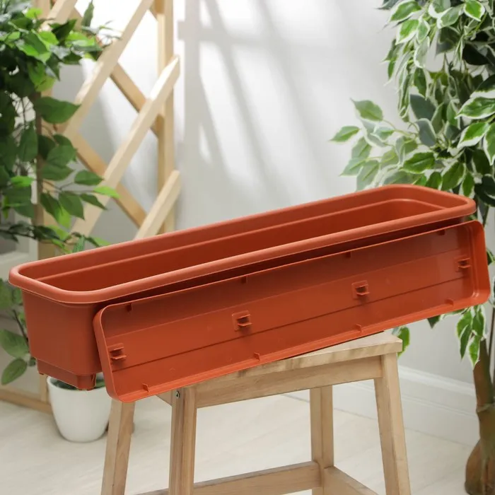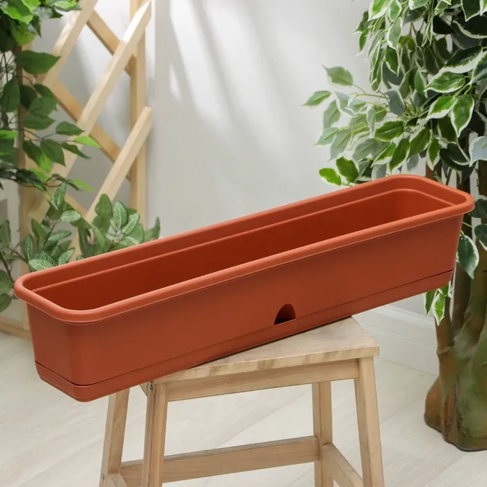 Ящик для цветов балконный с поддоном, 80 см, цвет терракотовый