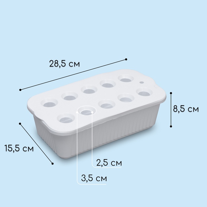 Ящик для выращивания зелёного лука, 29×16×8.5 см, 2.5 л, 10 лунок, пластик, белый, Greengo — Характеристики