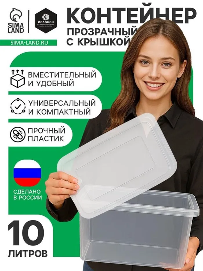 Практичный пластиковый контейнер с прозрачной крышкой. Просторная ёмкость объёмом 10 литров подходит для хранения мелочей, сезонных вещей, игрушек, канцелярии. Прозрачные матовые стенки позволяют видеть содержимое без необходимости открывать ящик.