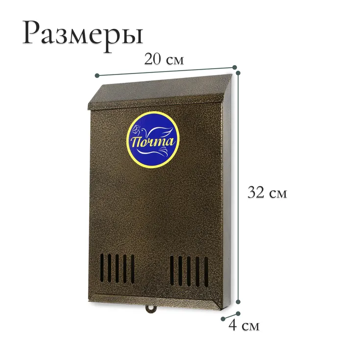 Ящик почтовый без замка (с петлёй), вертикальный, бронзовый — Характеристики