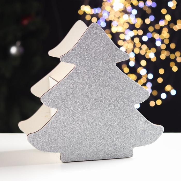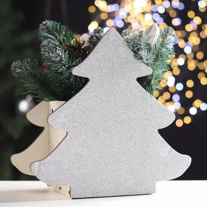 Ящик подарочный деревянный блестящий «Елочка», упаковка, серебро, 26×13.1×25.4 см — Характеристики