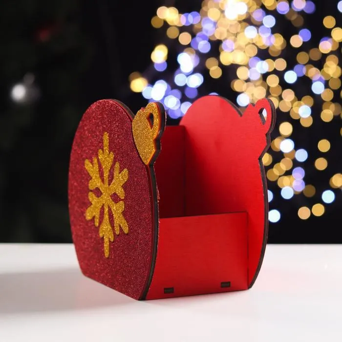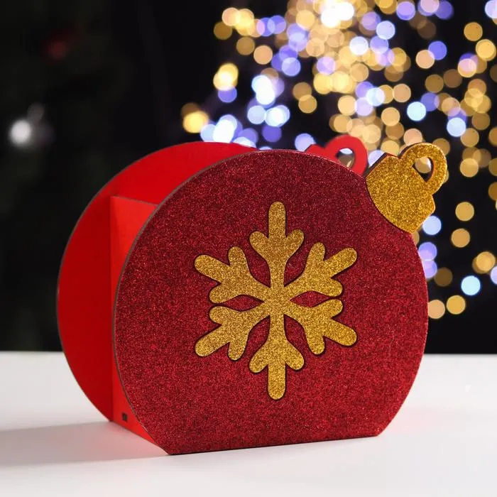 Ящик подарочный деревянный блестящий «Шар снежинка», красный, упаковка, 18.8×9.8×15.5 см — Характеристики
